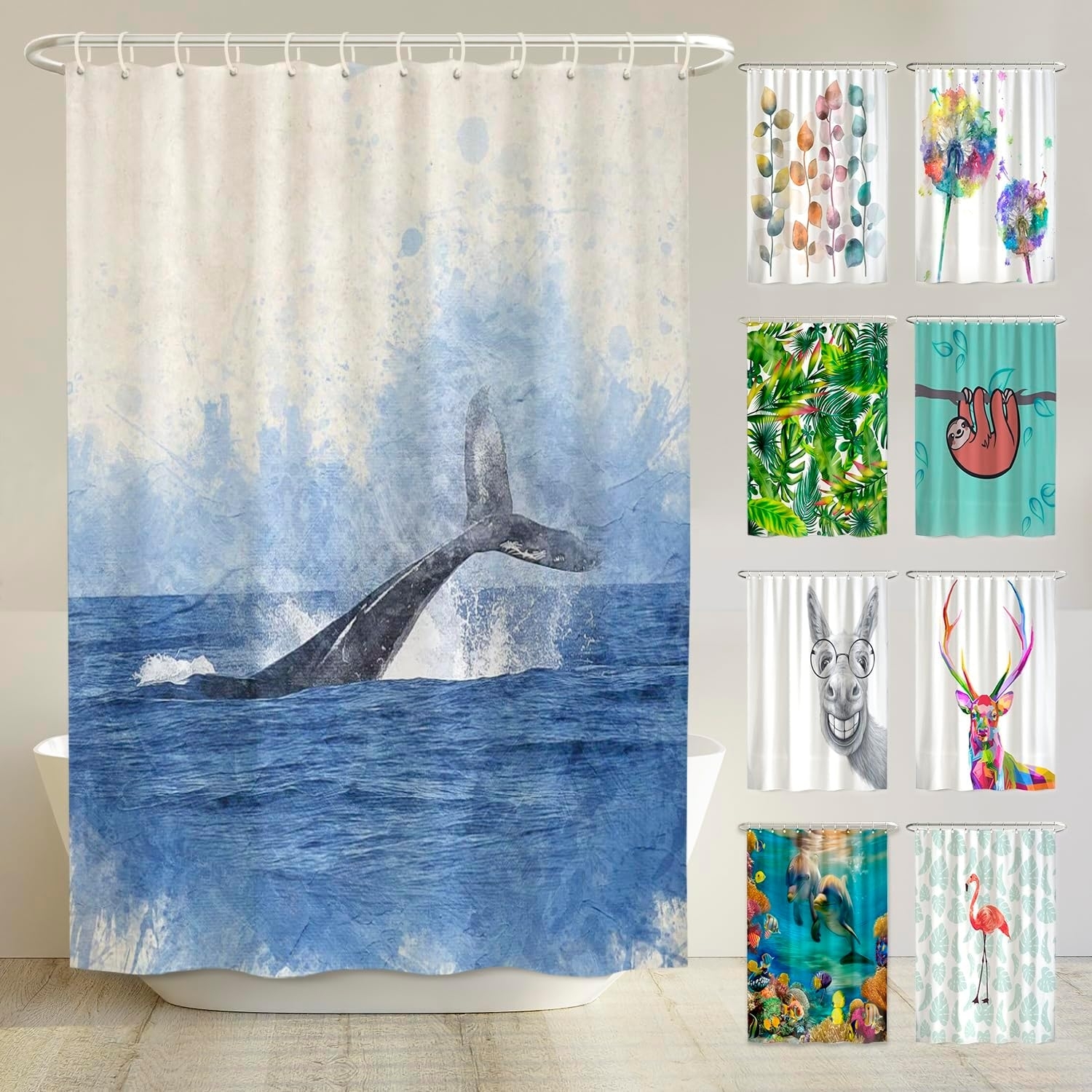 in Gardinen & Vorhängearteneur® - Wal Fisch - Anti-Schimmel Duschvorhang 240x200 - Recycelt mit Öko-Tex Standard 100 - Beschwerter SaumBlickdicht, Wasserdicht, Waschbar, 16 Ringe & E-Book