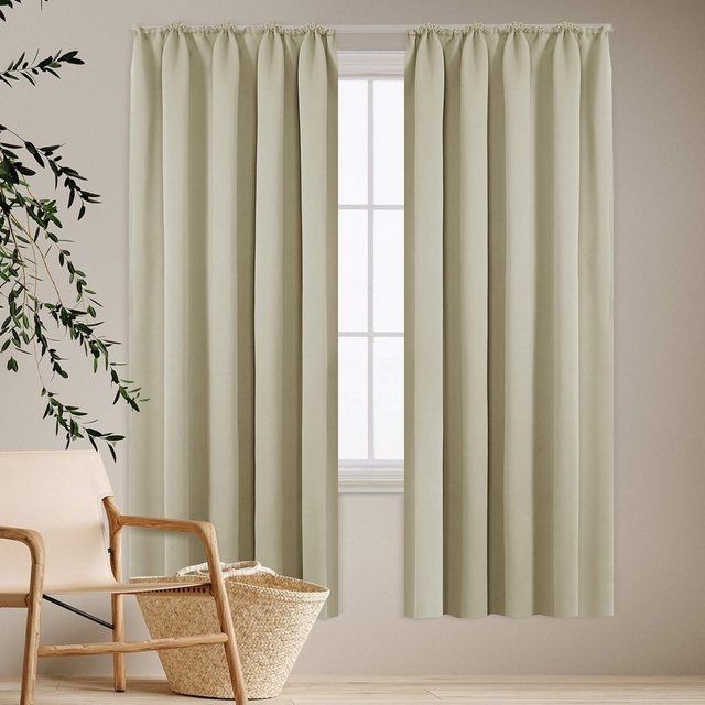 Die Deconovo Verdunkelungsvorhänge bieten effektiven Kälteschutz und Lärmschutz für Ihr Zuhause. Hergestellt aus 100 % Polyester, sind sie blickdicht und sorgen für ungestörten Schlaf. Mit einem eleganten Design und einer Gewebedichte von 75 D x 300 D sind sie pflegeleicht und können bei 30 Grad gewaschen werden. Die Vorhänge sind in einem praktischen 2er Set erhältlich und lassen sich einfach mit Kräuselband an der Gardinenstange aufhängen. **Highlights** - Blickdicht: Sorgt für ungestörten Schlaf und Privatsphäre. - Kälteschutz: Hält Räume im Winter wärmer und im Sommer kühler. - Lärmschutz: Minimiert Außengeräusche für eine ruhige Umgebung. - Pflegeleicht: Waschbar bei 30 Grad und bügelbar bis 110 Grad. - Elegantes Design: Passt sich harmonisch in verschiedene Raumgestaltungen ein. **Produkteigenschaften** - Material: 100 % Polyester - Maße (HxBxT): Höhe wird von dem Oberteil des Stoffs gemessen - Gewebedichte: 75 D x 300 D - Gewicht: 230 g/m² - Fadenzahl: 139 - Zusammensetzung: Drei Schichten mit schwarzer Schicht in der Mitte - Abweichung: Ca. 2-4 cm möglich **Lieferumfang** - 2x Verdunkelungsvorhänge - Gardinenstange nicht enthalten
