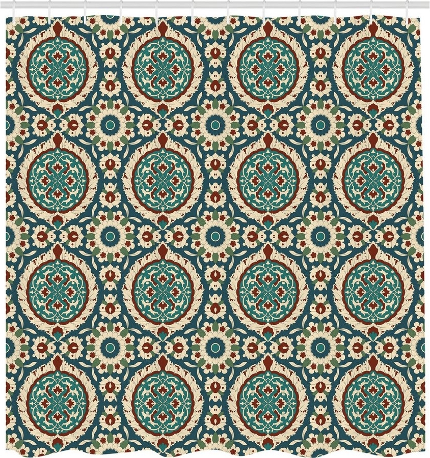 in Gardinen & VorhängeAbakuhaus Duschvorhang Moderner Digitaldruck mit 12 Haken auf Stoff Wasser Resistent Breite 175 cmHöhe 180 cm, orientalisch Retro nostalgisches Design