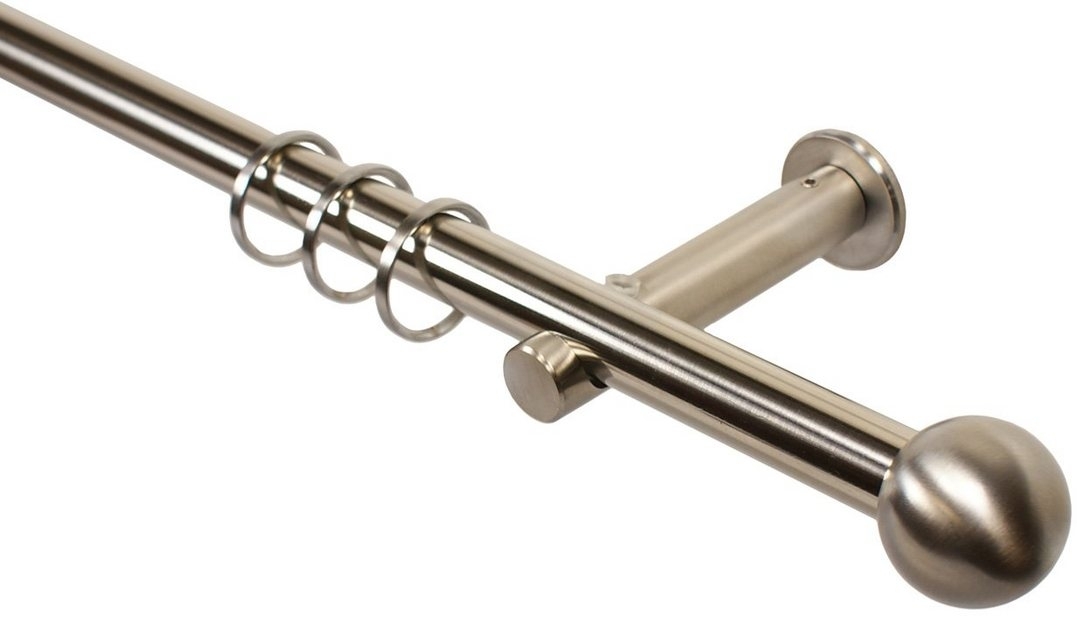 iso-design Gardinenstange Farbe Edelstahl Wandmontage 16 mm Endstück KugelØ 16 mm, 1-läufig, Fixmaß, Metall, Rohr aus Edelstahl