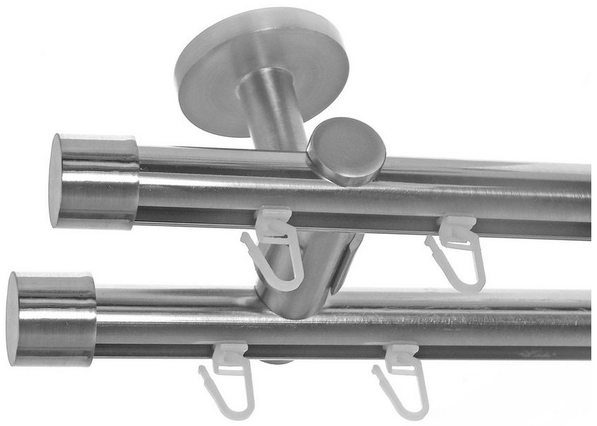 BASIT Gardinenstange Innenlauf Edelstahloptik 20mm mit Deckenträgern 120 cm E30Ø 20 mm, 2-läufig, verschraubt, Aluminium, D40 120 cm E30 Kappe