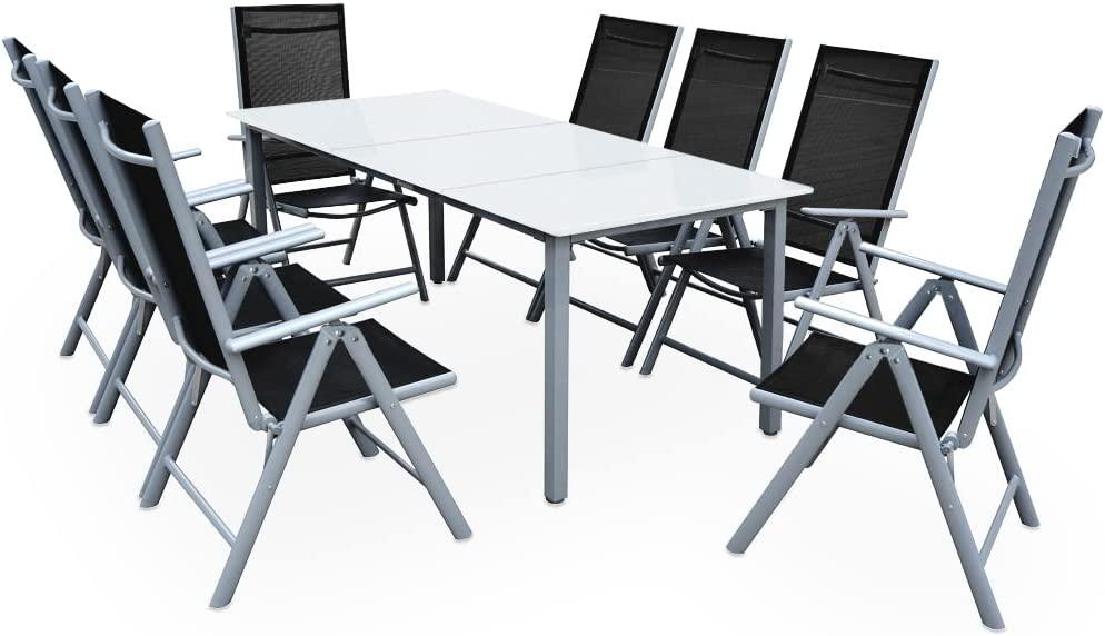 Casaria Gartenmöbelset Gartengarnitur Bern 9-teiliges Set Glas (Tischplatte), Aluminium (Gestell) silber, 190x90 cm