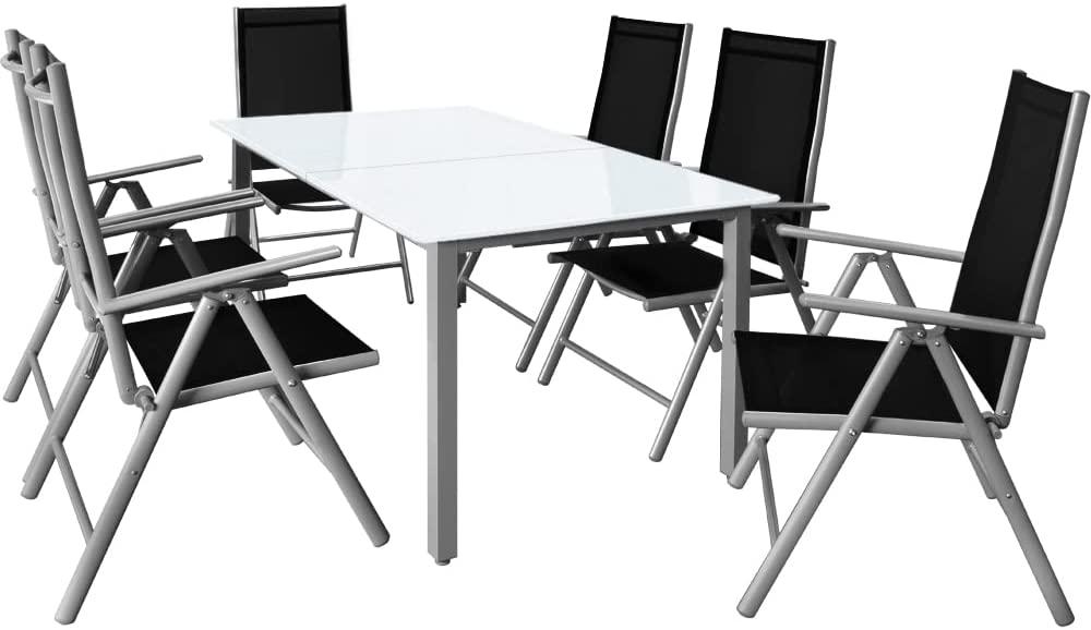 | Name | Casaria Garten-Essgruppe Bern, (7-tlg), Aluminium 5mm Sicherheitsglas Stühle Klappbar Verstellbar Wetterfest |