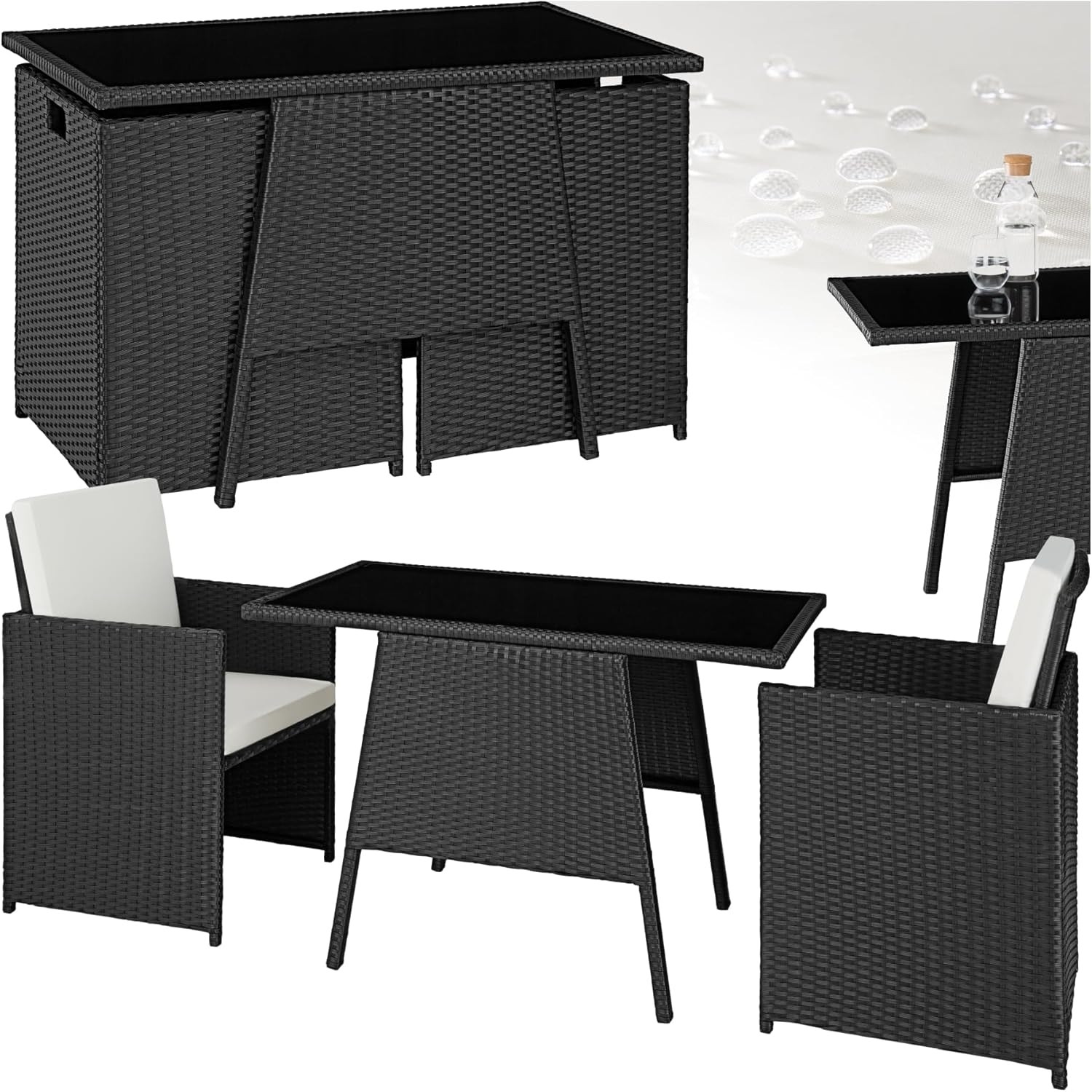Klein, aber fein – die Rattan Sitzgruppe Lausanne von tectake bietet Platz für 2 Personen und überzeugt durch ihr ansprechendes Design sowie ihre Funktionalität. Das hochwertige Polyrattan-Geflecht und das robuste, pulverbeschichtete Stahlgestell machen diese Möbelgarnitur ideal für kleine Balkone und Terrassen. Die abnehmbaren Kissen sorgen für zusätzlichen Komfort und sind leicht zu reinigen. **Highlights** - Handgefertigtes Rattangeflecht für eine einzigartige Note - Abnehmbare, wetterfeste Kissen für einfachen Komfort - Robustes Stahlgestell für Langlebigkeit und Stabilität - Platzsparendes Design, ideal für kleine Balkone - Einfache Montage mit beiliegender Anleitung **Produkteigenschaften** - Totalmaße Stuhl (BxTxH): ca. 52,5 x 56 x 88 cm - Sitzfläche (BxT): ca. 48 x 42 cm - Sitzhöhe: ca. 39 cm - Höhe Armlehne: ca. 67 cm - Rückenlehne (BxH): ca. 48 x 51 cm - Maße Sitzkissen (BxT): ca. 48 x 42 cm - Maße Rückenkissen (BxH): ca. 48 x 48 cm - Dicke der Kissen: ca. 5 cm - Totalmaße Tisch (LxBxH): ca. 111 x 59,5 x 74 cm - Maße Glasplatte (LxBxH): ca. 104,5 x 53,2 x 0,5 cm - Belastbarkeit Stuhl: 120 kg - Belastbarkeit Tisch: 45 kg - Gewicht Stuhl (mit Kissen): ca. 8,3 kg - Gewicht Tisch (mit Glasplatte): ca. 13,4 kg - Material: Stahl, Polyethylen, 100 % Polyester **Lieferumfang** - 2 Stühle mit Kissen - 1 Tisch mit Glasplatte - Montagematerial - Aufbauanleitung