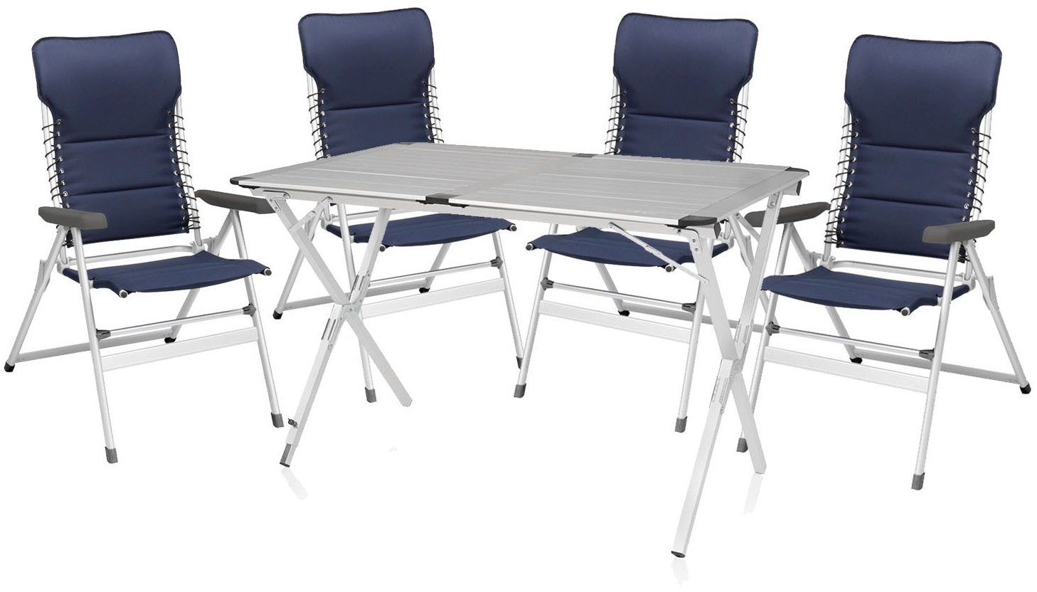 Camping SET: 4 Campingstühle Hochlehner gepolstert mit Alu Klapptisch 110x70cm