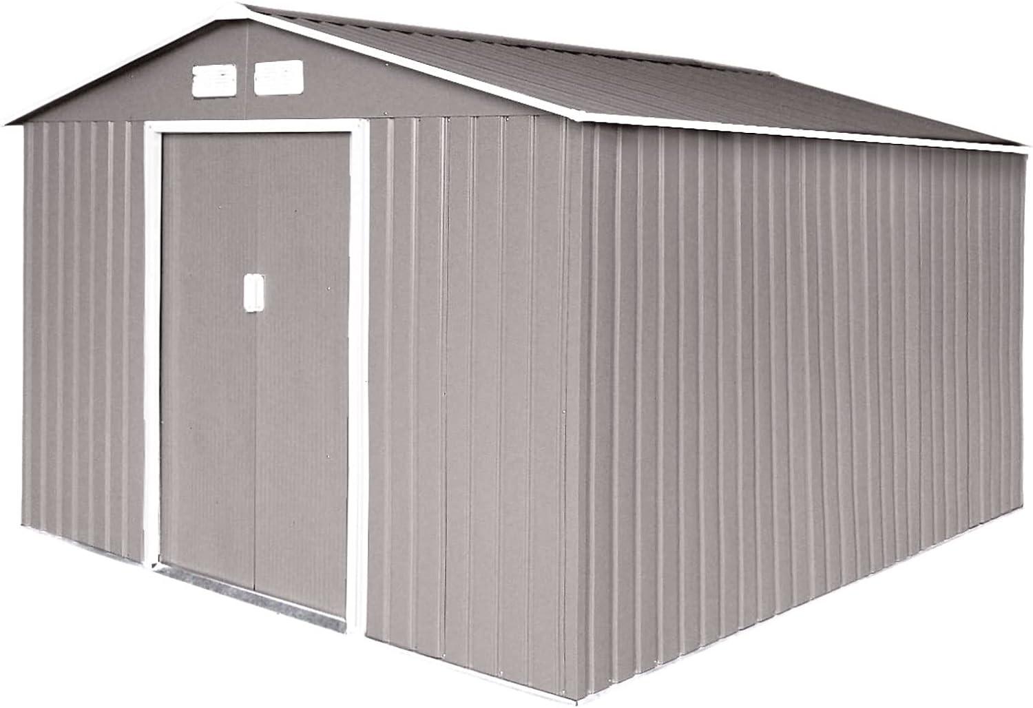 Das XXXL Metall Gerätehaus von HATTORO bietet mit einem Volumen von 15 m³ ausreichend Platz für Ihre Gartengeräte. Hergestellt aus robustem, wetterfestem hellgrauem Stahlblech, verfügt es über Doppel-Schiebetüren, Belüftungsgitter und ein Satteldach. Die Gesamtmaße betragen ca. 277 x 319 x 192 cm (L x B x H), während die Innenmaße ca. 267 x 309 x 192 cm betragen. **Highlights** - Großzügiger Stauraum für Gartengeräte - Robustes und wetterfestes Stahlblech - Doppel-Schiebetüren für leichten Zugang - Belüftungsgitter für gute Luftzirkulation - Inklusive Fundament-Rahmen für Stabilität **Produkteigenschaften** - Innenmaße: ca. 267 x 309 x 192 cm - Sockelmaß: ca. 267 x 309 cm - Firsthöhe: ca. 192 cm - Traufhöhe: ca. 152 cm - Breite der Tür: ca. 96 cm - Farbe: Hellgrau - Material: Lackiertes und verzinktes Stahlblech **Lieferumfang** - 1x Gerätehaus inkl. Fundament-Rahmen - Als Bausatz zerlegt in 4 Paketen - 1x Aufbauanleitung