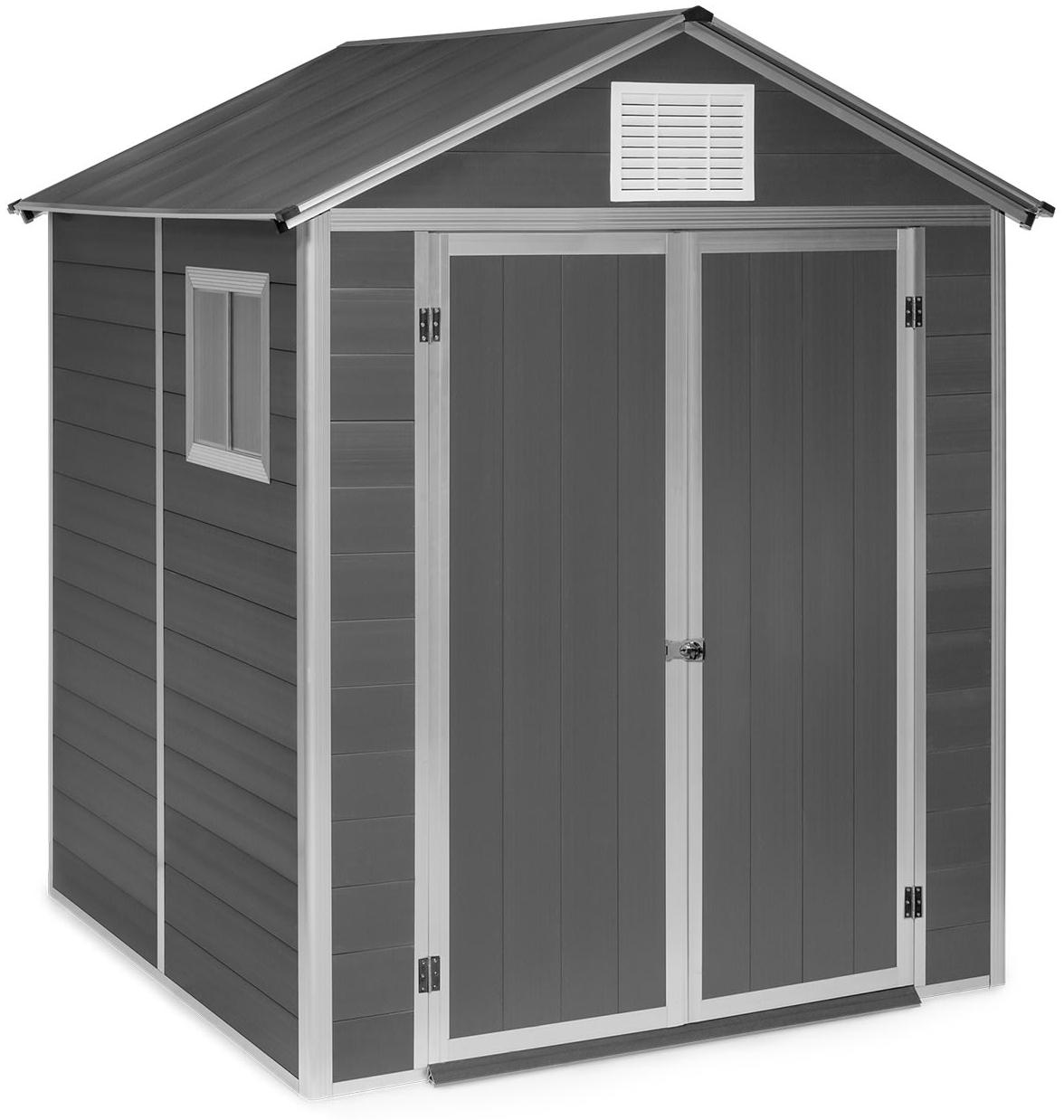 Der **blumfeldt** Schatzkammer **Gartenschuppen** überzeugt durch seine ansprechende Optik und seine robuste Fertigung als idealer Aufbewahrungsort für Gartenmöbel, Werkzeuge und Gartengeräte. Die **blumfeldt** Schatzkammer sorgt nach getaner Gartenarbeit zuverlässig für Ordnung und bietet idealen Schutz für Werkzeug, Gartengeräte und Gartenmöbel vor Sonneneinstrahlung, Rost- und Schimmelbildung. Das schmucke Häuschen aus resistentem PVC verfügt mit seinen Maßen von 170 x 218 x 170 cm nämlich nicht nur über jede Menge Stauraum, sondern bewahrt sämtliche Geräte und Möbel dank Witterungs- und UV-Schutz auch ganzjährig vor Wind und Wetter. Eine Ventilationsöffnung sorgt zusätzlich für eine kontinuierliche Belüftung, während das Seitenfenster den Innenraum mit ausreichend Licht versorgt. Eine verriegelbare Doppeltür hält außerdem alle unliebsamen Besucher vom Eintritt in den **Geräteschuppen** ab. Für noch mehr Sicherheit kann zusätzlich ein Vorhängeschloss angebracht werden. Mit ihrem stilvollen Äußeren fügt sich die Schatzkammer darüber hinaus perfekt in jedes Gartenambiente ein. Der Schatzkammer **Gartenschuppen** von **blumfeldt**: Sorgt für Ordnung im Garten, bietet Schutz vor Wind und Wetter und macht dank stilvollem Design immer eine gute Figur. Abmessungen: - Maße: ca. 170 x 218 x 170 cm (BxHxT) - Gewicht: ca. 77 kg Lieferumfang: - 1 x Gartenschuppen (Montagesatz) - mehrsprachige Montageanleitung EAN: 4060656229602