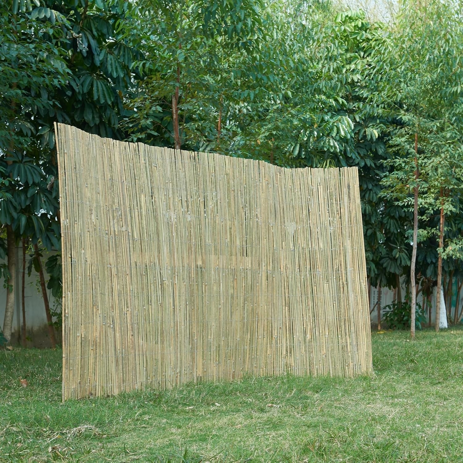 | Beschreibung | Die Bambusmatte ist die perfekte Lösung für effektiven Sicht- und Windschutz in Ihrem Außenbereich. Mit den Maßen 150 x 300 cm fügt sich der Zaun harmonisch in Garten, Balkon oder Terrasse ein und schafft eine private Atmosphäre. Hergestellt aus naturbelassenen Bambusstäben und verzinktem Eisendraht, ist er witterungsbeständig und langlebig. Die Montage erfolgt einfach und schnell, sodass Sie ohne großen Aufwand Ihren Rückzugsort gestalten können. **Highlights** - Idealer Sicht- und Windschutz für Außenbereiche - Natürliche Optik, fügt sich harmonisch ein - Elegantes Dekoelement für Garten und Terrasse - Zum Einteilen des Gartens oder als Zaunverkleidung geeignet - Auch im Innenbereich als Raumtrenner verwendbar **Produkteigenschaften** - Maße (HxB): 150 x 300 cm - Zaundicke: ca. 0,6 cm - Material: Bambus - Drahtbindung: Eisen, verzinkt - Farbe: Natur - Witterungsbeständig und langlebig - Natürliches und umweltfreundliches Material **Lieferumfang** - 1 x Bambuszaun |