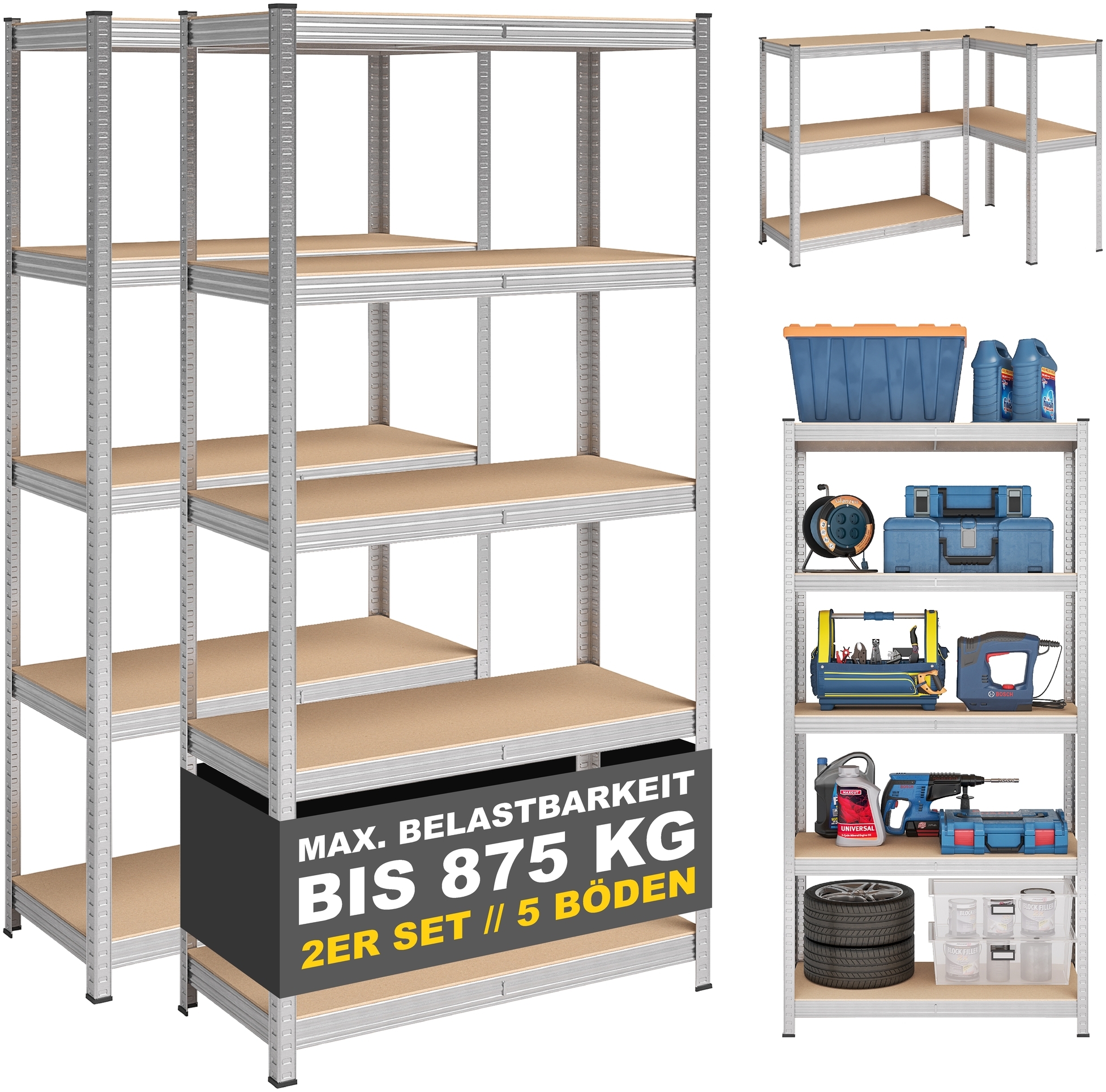 | Name | STEELSØN 'Arax' Schwerlastregale, 2er-Set, silber, 180 x 90 x 40 cm, inkl. 5 höhenverstellbare Ablagen |
