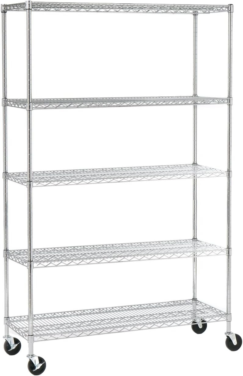 Seville Classics Schwerlastregal mit 5 Böden und Lenkrollen121. 9x45. 7x182. 8cm (LxBxH), Verchromt