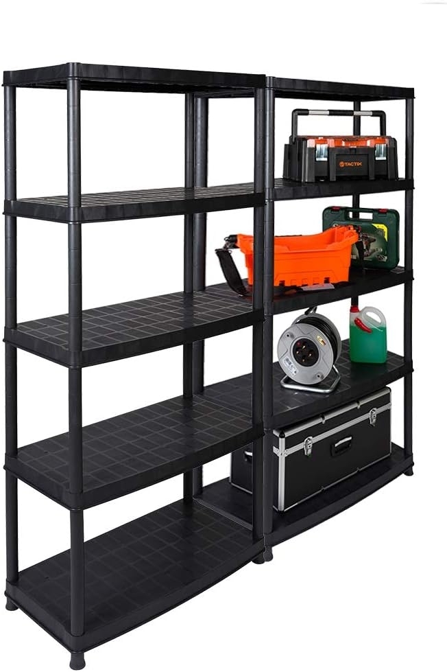 **EFFIZIENTE ORGANISATION ZUM KLEINEN PREIS** Kreher Kunststoff-Schwerlastregale - leichtgewichtig und flexibel für Haushalt, Werkstatt, Keller, Garage und Garten. Einfacher Aufbau, robust und langlebig dank recyceltem Material. **STABILITÄT UND LEICHTIGKEIT OHNE KOMPROMISSE** Abwaschbare, rostfreie Plastikregale mit intelligentem Stecksystem. Ideal für Werkzeuge, Ausrüstung, Reinigungsmittel oder Schuhe - optimierter Stauraum von Haushalt bis Garten. **DAS UNENDLICH ERWEITERBARE ORDNUNGSSYSTEM** Modulares Design für jeden Raum. Teilbar als 3+2 Boden Werkstattregal. Regal-Verbinder bieten ganzheitliche Lösung. Ideal für Garten, Balkon, Gartenschuppen! **EINFACHE MONTAGE OHNE WERKZEUGE** Stressfreier Aufbau mit dem unkomplizierten Stecksystem. Platzsparend verpackt inklusive Anleitung. Jedes Regal in ca. 12 Minuten aufgebaut - mehr Zeit für Ihre Organisation! **MOBILE LAGERLÖSUNG FÜR DRINNEN UND DRAUSSEN** Wetterfest, rostbeständig und schimmelresistent. Vielseitig einsetzbar in Keller, Garten, Geschäft, Lager, Camping oder Flohmarkt. Flexibel und nachhaltig! **NACHHALTIGE QUALITÄT** Abwaschbare, umweltfreundliche Steckregale aus recyceltem Material. Umweltfreundlich ohne Kompromisse. Qualitätssiegel des TÜV Rheinland attestiert bewährte Qualität. **ALLE INFOS ZUM REGAL** Lieferumfang: 2 Lagerregale, Maße pro Regal (BxTxH) 85 x 40.5 x 185 cm, 5 Böden, Traglast pro Boden 60 kg, Gesamt-Traglast max. 300 kg, Aufbau ohne Werkzeuge, TÜV Rheinland geprüft.