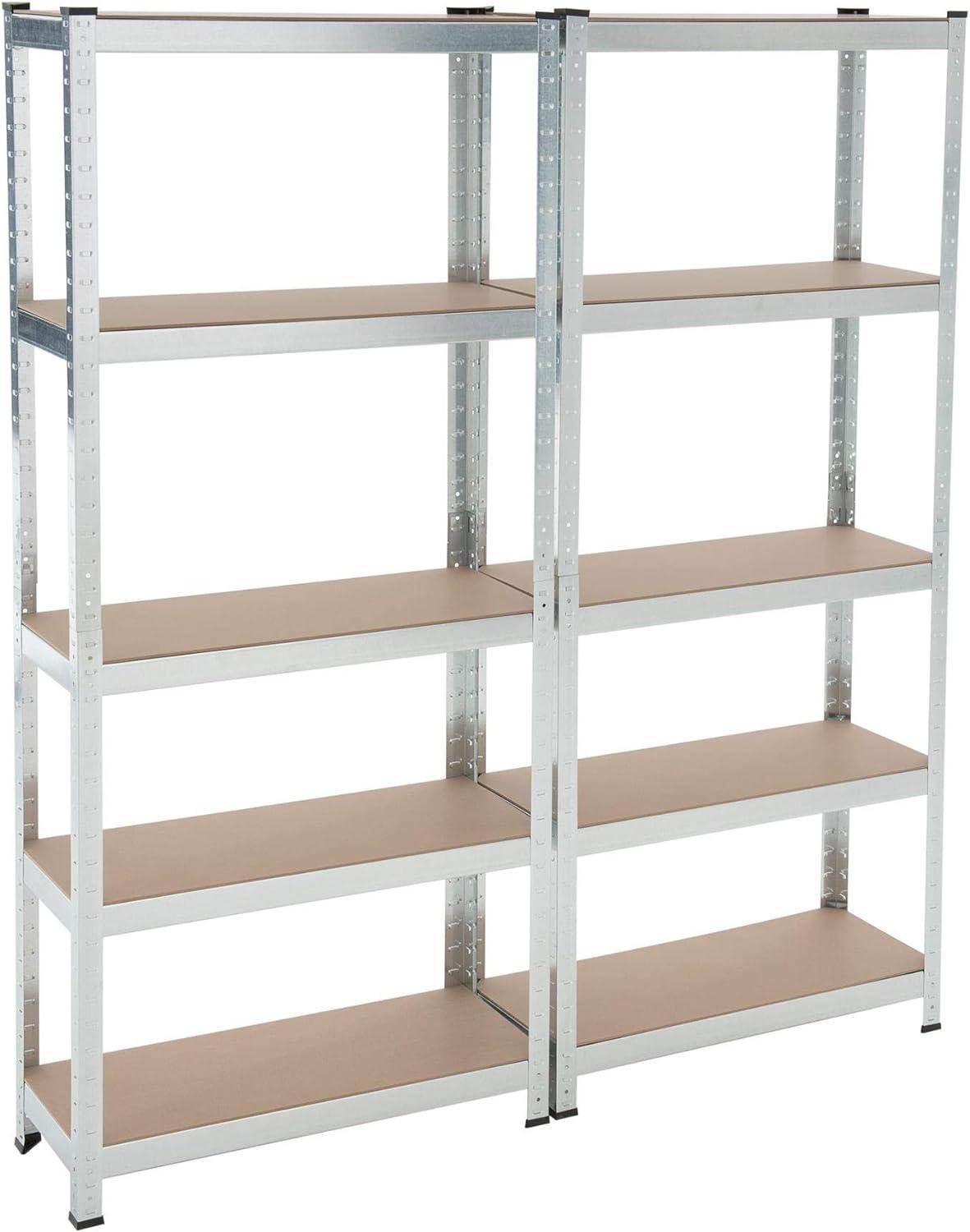 Lagerregal Steckregal Werkstattregal 170 x 75 x 30 cm 2x Kellerregal Schwerlastregal. Robuste Metallkonstruktion mit verstärkenden Querstreben. Einfacher Aufbau im Stecksystem ohne Schrauben. Böden aus MDF-Platten, individuell verstellbar. Vielseitig einsetzbar als Werkstatt-, Keller- oder Lagerregal, sogar als Werkbank nutzbar. **Highlights** - Robuste Metallkonstruktion mit verstärkenden Querstreben - Einfacher Aufbau im Stecksystem ohne Schrauben - Böden aus MDF-Platten, individuell verstellbar - Vielseitig einsetzbar als Werkstatt-, Keller- oder Lagerregal - Max. Tragkraft pro Boden: 70 kg, pro Regal: 350 kg **Produkteigenschaften** - Abmessungen (HxBxT): 2x ca. 170 x 75 x 30 cm - Bodenmaterial: MDF (ca. 4 mm stark) - Bodenanzahl: 5 Stück pro Regal - Material Gestell: verzinktes Metall