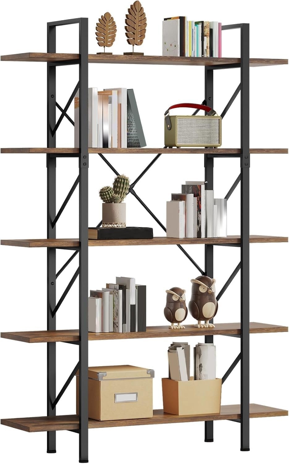 YITAHOME 5-stöckiges BücherregalArtsy Modernes Bücherregal, Bücherregal, Lagerregal-Regale im Wohnzimmer/Zuhause/Büro, Bücherhalter-Organizer für Bücher/Filme - Rustikales Braun (FTOFBC-0030)