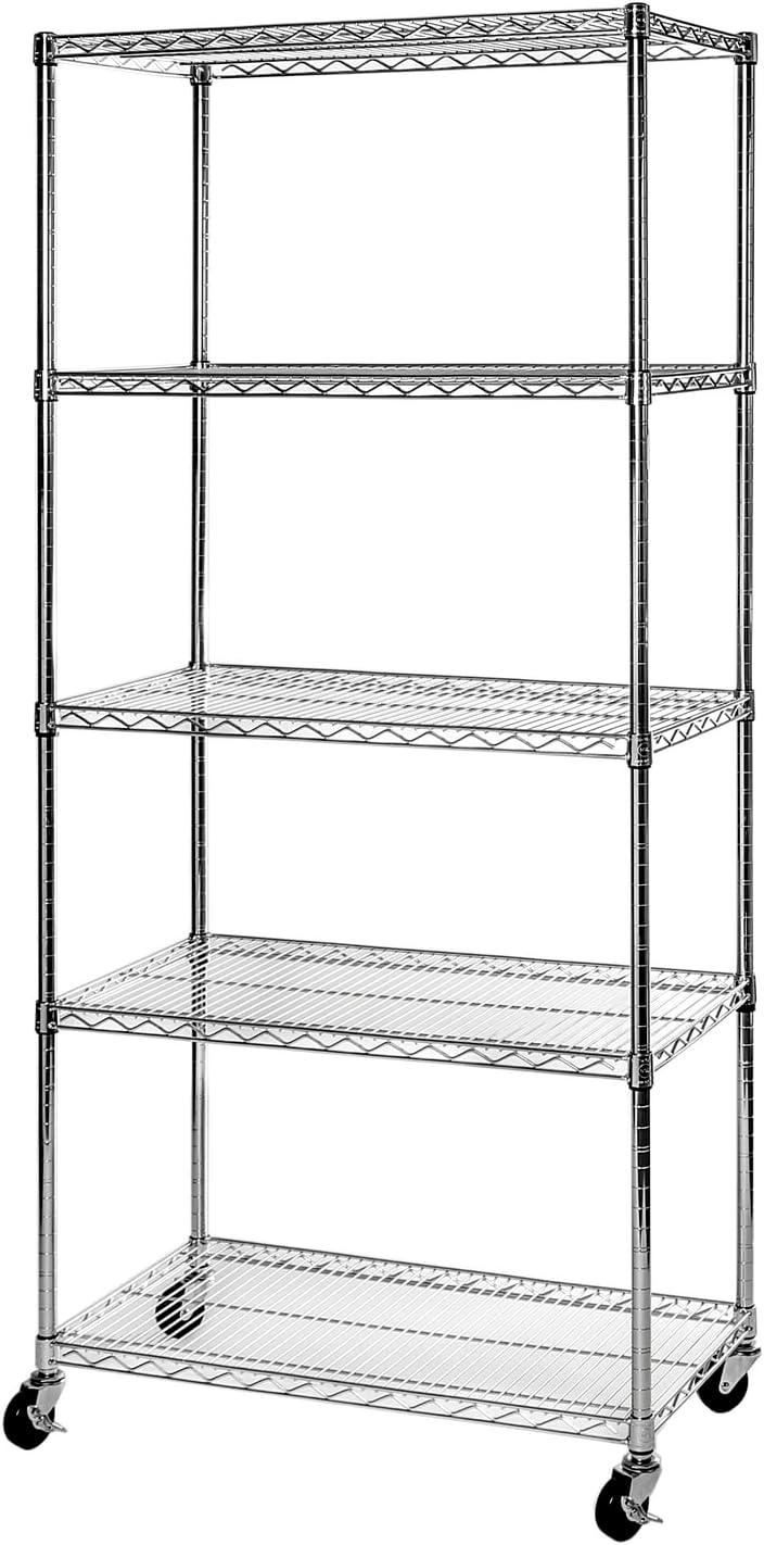 Seville Classics Schwerlastregal mit 5 Böden und Lenkrollen91, 4x45, 7x182, 8 cm (LxBxH),Verchromt