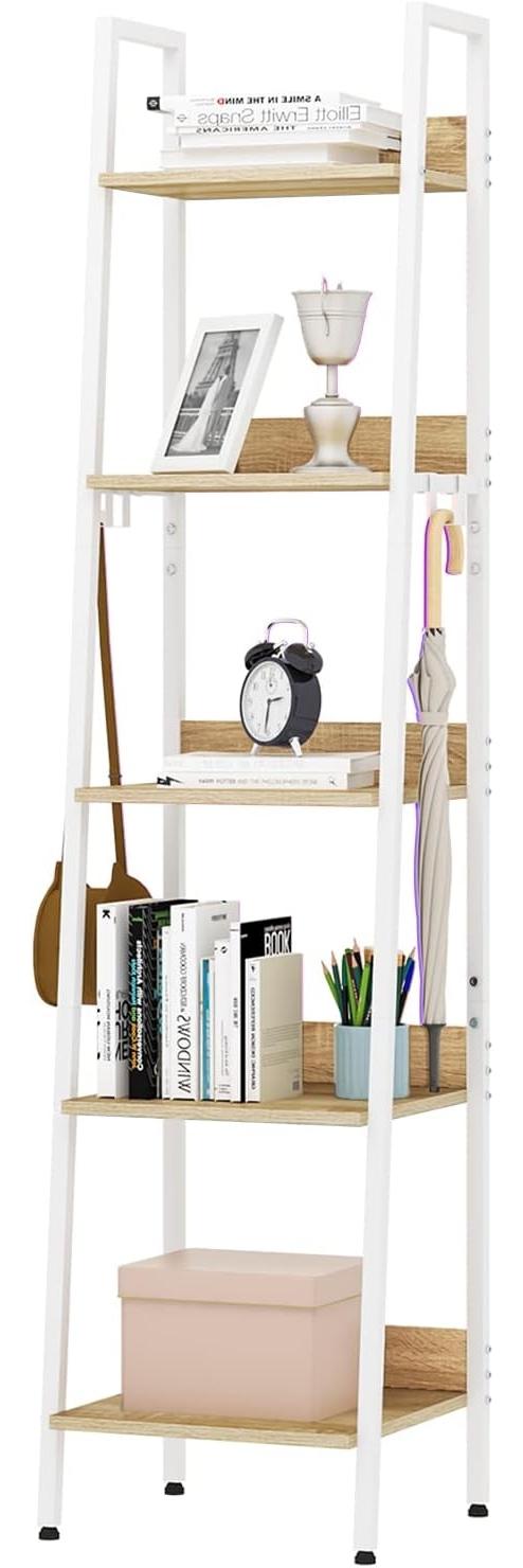 WOLTU Lagerregal mit 5 EbenenKüchenregal mit 4 Haken, Bücherregal im Industriestil, Standregal im Wohnzimmer Küche, Regal aus MDF Metall, schmales Leiterregal weiß 40 x 170 x 36 cm RGB9289whe