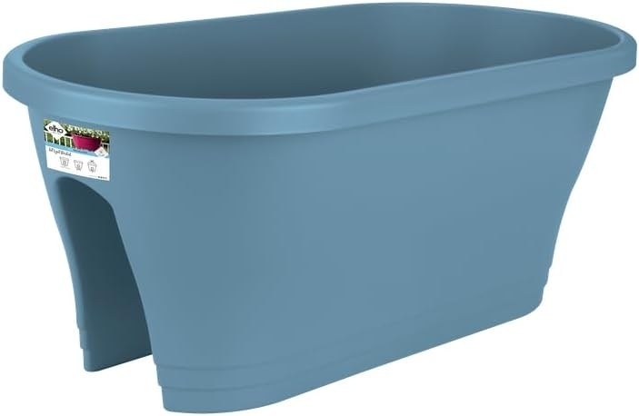 Der Elho Pflanztopf Flower Bridge in Blau, 60 cm, schafft im Handumdrehen eine grüne Oase auf Ihrem Balkon. Mit integriertem Überlaufrohr und Untersetzer für langfristig gesunde Pflanzen. Aus Kunststoff, oval geformt, 23,8 cm hoch, 18 l Volumen, 840 g. Passend für Balkongeländer bis 6 cm Breite. Inkl. 2 Fixiereinrichtungen. **Highlights** - Integriertes Überlaufrohr und Untersetzer: Für langfristig gesunde Pflanzen - Passend für Balkongeländer bis 6 cm Breite: Einfach zu befestigen - 18 l Volumen: Ausreichend Platz für Ihre Pflanzen - Oval geformt: Ästhetisches Design - Leichtes Gewicht von 840 g: Einfach zu handhaben **Produkteigenschaften** - Material: Kunststoff - Farbe: Vintage Blau - Maße: 60 cm lang, 23,8 cm hoch - Gewicht: 840 g - Für den Außenbereich geeignet **Lieferumfang** - 1x Elho Pflanztopf Flower Bridge in Blau, 60 cm - 2x Fixiereinrichtungen