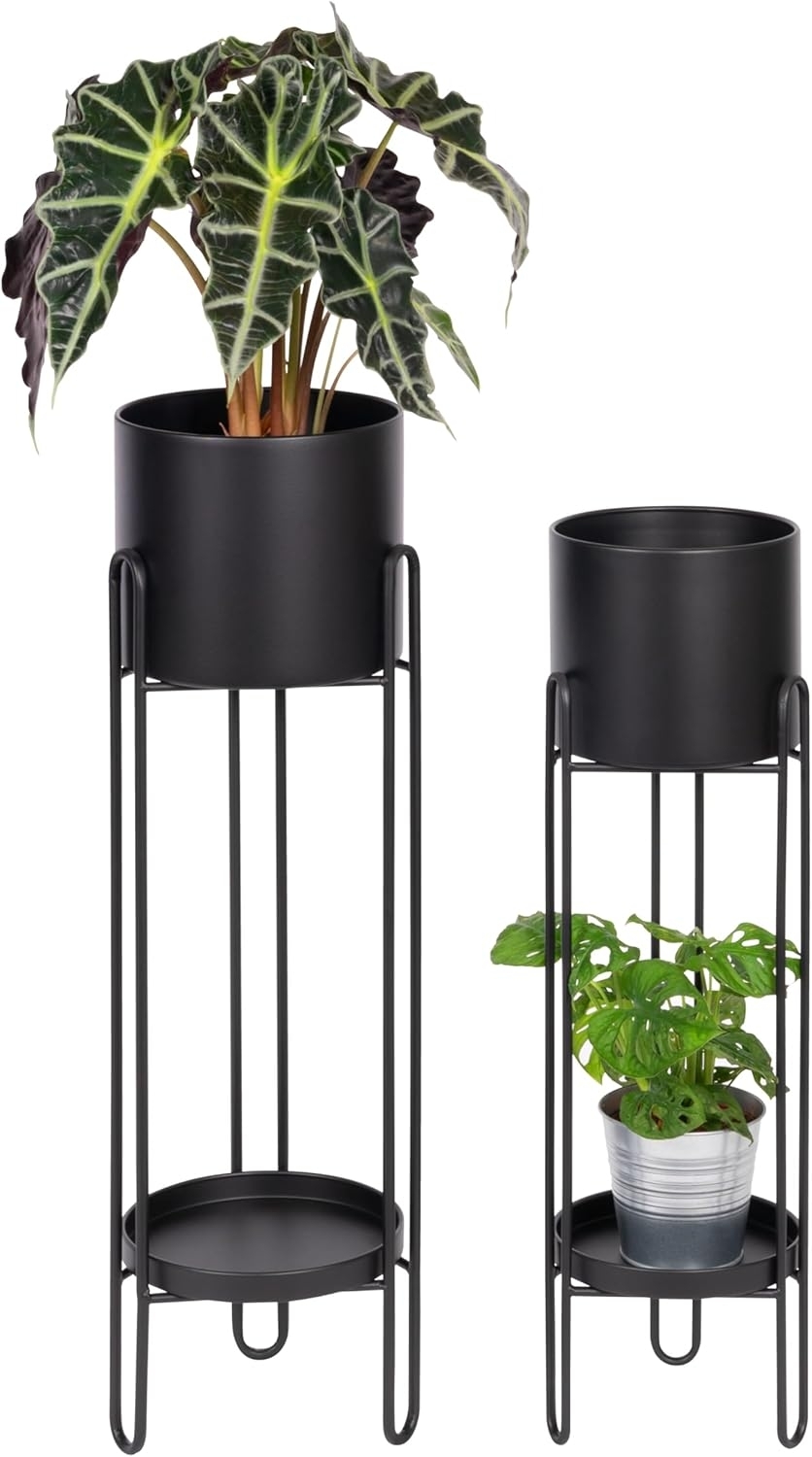 Das bremermann Blumenhocker 2er-Set ist die perfekte Lösung, um Ihre Pflanzen stilvoll zu präsentieren. Mit einem modernen Industriedesign und zwei unterschiedlichen Höhen schaffen Sie ein optisches Highlight in jedem Raum. Die herausnehmbaren Übertöpfe bieten Platz für Schalen und Töpfe bis ca. 21 cm Ø und ca. 18 cm Ø. Die stabilen Hocker sind leicht und bieten zusätzlichen Stauraum für Vasen oder Dekoration. **Highlights** - 2 Blumentöpfe und 2 Ablagen - modernes Industriedesign - geeignet für viele Wohnbereiche - nahezu vollständig montiert geliefert - platzsparend verstaubar **Produkteigenschaften** - Material: Metall, pulverbeschichtet - Abmessung klein: ca. 20,7 x 20,7 x 74,4 cm (B/T/H) - Abmessung groß: ca. 24,7 x 24,7 x 83 cm (B/T/H) - Abstand zwischen Schale und Topf ausreichend **Lieferumfang** - 2x Ständer - 2x Topf - 2x Ablage