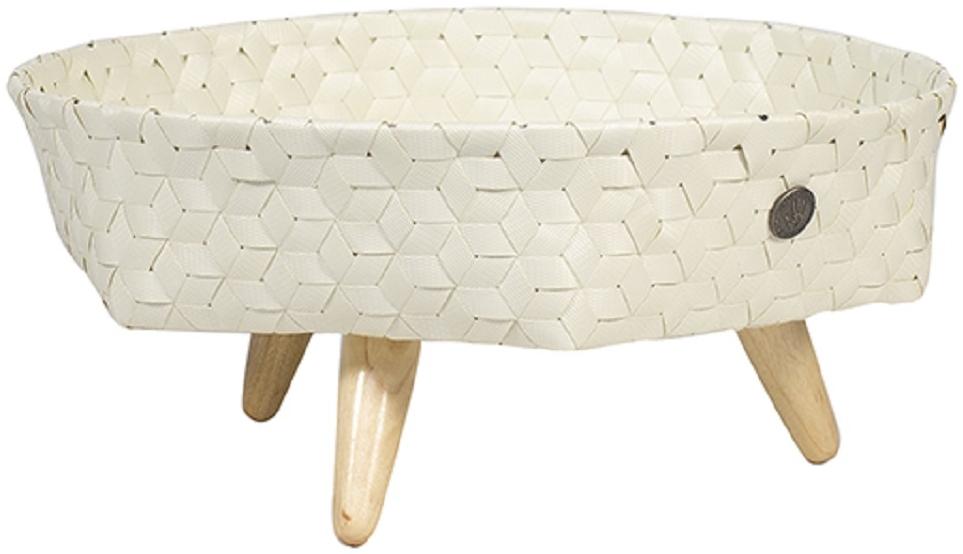 Ein handgefertigter Korb auf schicken Holzfüßen von HANDED BY. Dieser praktische und hübsche Korb eignet sich ideal als Übertopf oder Aufbewahrungskorb. Mit einem Durchmesser von 37 cm und einer Höhe von 8 cm bringt er Ihre Pflanzen zur Geltung und bietet Platz für Zeitschriften, Handarbeiten und mehr. Der Korb ist umweltfreundlich aus bis zu 70 % recyceltem Kunststoff gefertigt und garantiert ohne Kinderarbeit hergestellt. **Highlights** - Schickes Design: Modern und ansprechend - Leicht zu säubern: Einfache Reinigung - Handarbeit: Liebevolle Herstellung - Garantiert ohne Kinderarbeit: Sozial verantwortlich produziert - Umweltfreundlich: Großteil aus recyceltem Kunststoff **Produkteigenschaften** - Material: Kunststoff (bis zu 70 % recycelt), Füße aus Holz - Marke: HANDED BY - Serie: Dimensional - Farbe: ecru white - Maße: Korb Ø 37 cm, Höhe 8 cm (es kann zu kleinen Abweichungen kommen)