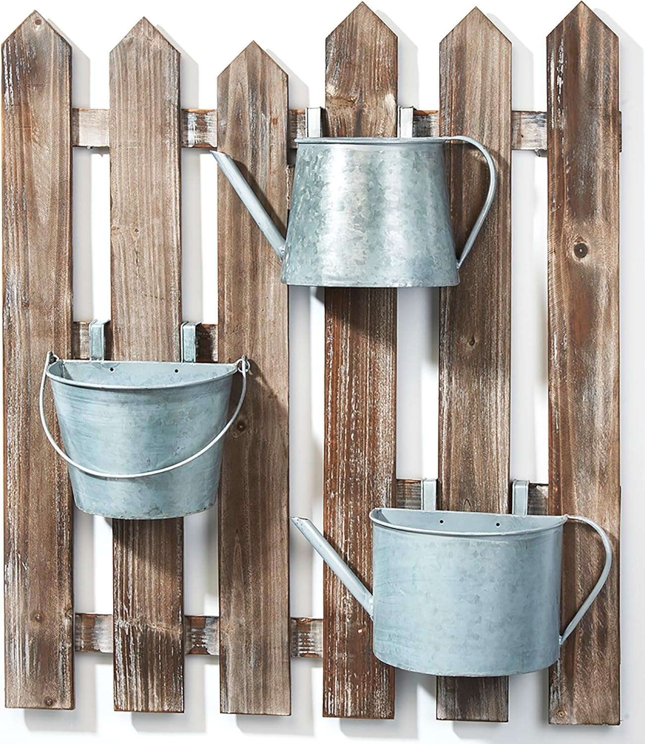 | Name | Kobolo Blumentopf Blumenkasten aus Holz - 3 Metallbehälter mit Haken, aus Holz |