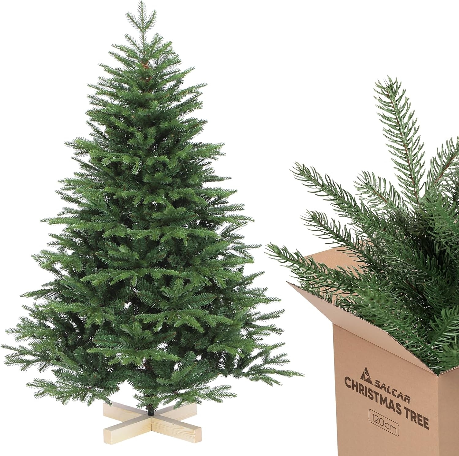 | Name | Salcar Künstlicher Weihnachtsbaum Weihnachtsbaum Künstlich Tannenbaum Christbaum mit Holzständer PE PVC, Nordmanntanne, 120 cm mit 725 PE-Zweigen und 203 PVC-Zweigen |