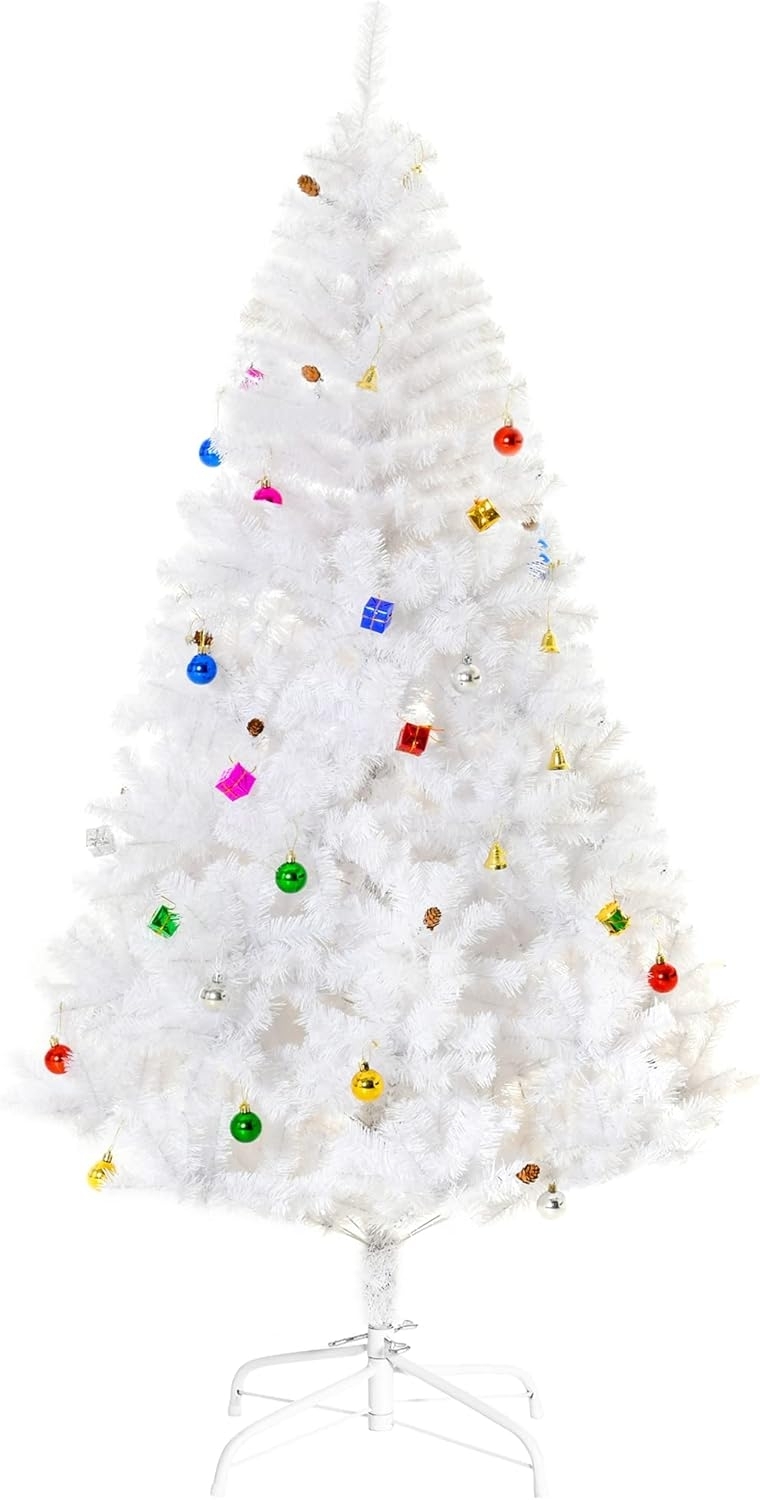 Unser HOMCOM Künstlicher Weihnachtsbaum in schneeweiß bringt festliche Eleganz in Ihr Zuhause. Mit einer Höhe von 180 cm und einer Breite von 105 cm verwandelt er jeden Raum in ein Winterwunderland. Der Baum ist mehrfach wiederverwendbar, nadelt nicht und lässt sich problemlos aufstellen, auch in der Nähe von Heizungen. Genießen Sie die Vorzüge eines künstlichen Baumes ohne Brandgefahr und lästige Entsorgung. **Highlights** - Künstlicher Weihnachtsbaum in schneeweiß - Höhe: 180 cm, Breite: 105 cm - Mehrmals wiederverwendbar - Kein Nadeln und keine Entsorgung nötig - Sicher in der Nähe von Heizungen **Produkteigenschaften** - Farbe: Weiß - Inkl. Metallständer - Einfacher Aufbau - Lieferung inklusive Weihnachtsbaumdekoration **Lieferumfang** - Künstlicher Weihnachtsbaum - Metallständer - Weihnachtsbaumdekoration (dezent ausgewählt)
