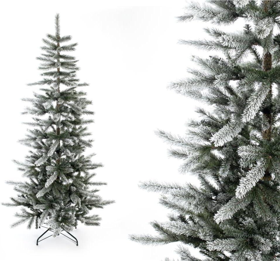 Der Evergreen Künstliche Weihnachtsbaum Cedar Frost ist ein immergrüner, nadelfreier Baum, der mit seinen dichten, biegbaren Zweigen aus hochwertigem Kunststoff täuschend echt aussieht. Die Kunstschnee-Beschichtung verleiht ihm einen winterlichen Look. Mit einer Höhe von 210 cm und einem stabilen Metallständer ist er ideal für die Weihnachtsdekoration in Ihrem Zuhause oder als Deko-Element in Hotels und Kaufhäusern. **Highlights** - Künstlicher Weihnachtsbaum in Kiefernoptik - Dichte und biegbare Zweige für ein natürliches Aussehen - Dekorative und haltbare Kunstschnee-Beschichtung - Einfacher Aufbau dank Stecksystem - Platzsparend zu verstauen **Produkteigenschaften** - Abmessungen: 210 cm Höhe, 114 cm Breite - Gewicht: 9 kg - Maße im demontierten Zustand: 107 x 32 x 38 cm - Farbe: Weiß - Material: Hochwertiger Kunststoff (PE & PVC) - Ca. 647 biegbare Nadelzweige - Stabiler Metallständer **Lieferumfang** - Metallständer - Weihnachtsbaum Cedar Kiefer Frost mit Kunstschnee