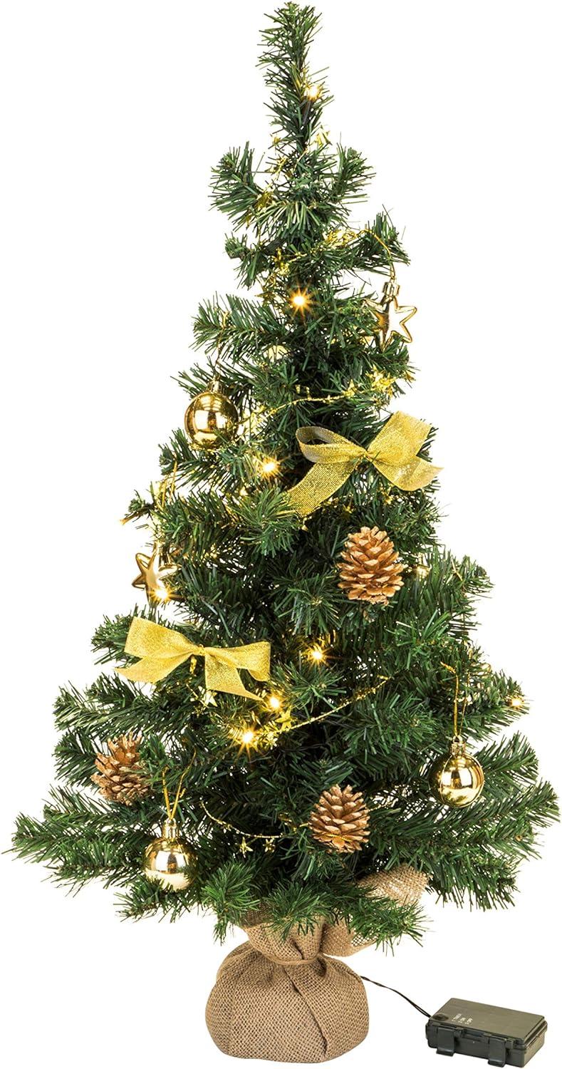 Bambelaa! Weihnachtsbaum Künstlich Mit Beleuchtung Geschmückt Tannenbaum Dekoriert Christbaum Beleuchtet LED 75cm Gold