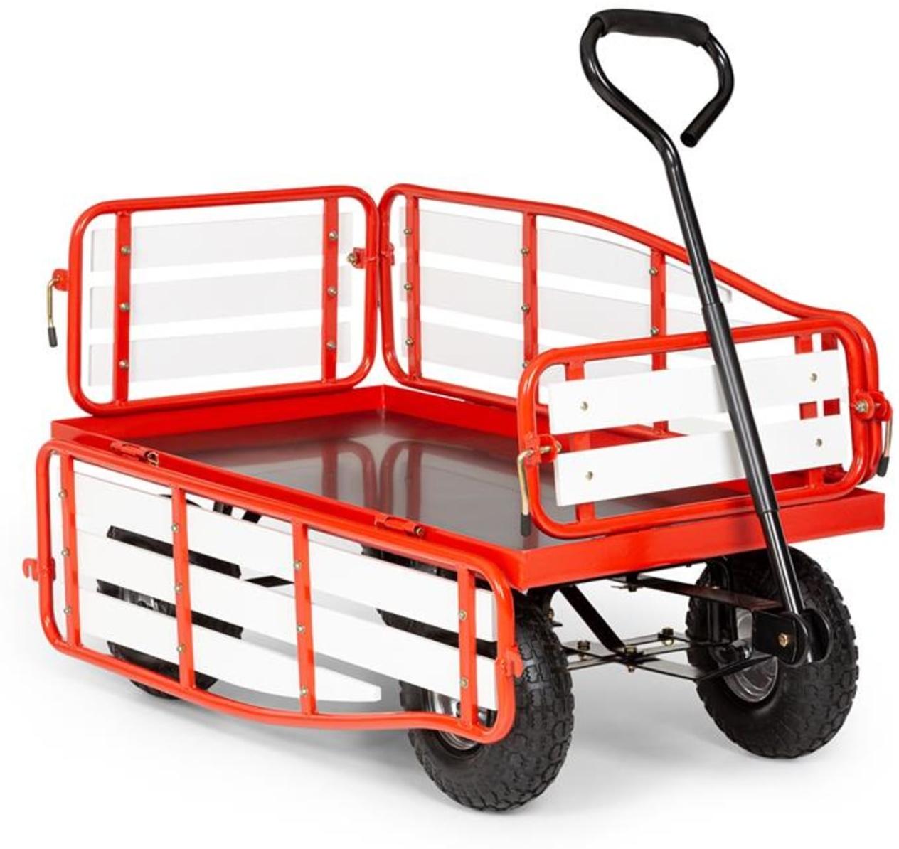 \"Aufladen, Abladen, Glücklich sein: Der Waldbeck Ventura Handwagen ist ein unheimlich praktischer Helfer bei der Gartenarbeit, beim Transport von unhandlichen oder schweren Objekten und natürlich auch beim Einkauf oder der Gestaltung von Ausflügen ins Grüne. Egal ob du eine eine Hecke setzen oder dein Blumenbeet noch farbenfroher gestalten möchtest, der Ventura ist genau der richtige Partner für dich. Einfach alle benötigten Gartengeräte und die Pflanzen aufladen und ohne große Anstrengung transportieren. Und für die Zeit nach der Arbeit finden Grill und Getränkekisten auch ein Plätzchen auf der 100 x 50 cm großen Ladefläche! Der Waldbeck Ventura Bollerwagen besitzt ein robustes Gestell aus schwarz lackiertem Metall. Stabile Seitenteile aus WPC (Wood-Plastic-Composite) verleihen der Ladung Halt und dem Handwagen ein ansprechendes Äußeres - und sind unempfindlich für Schimmel. Ein handliche, 75 cm lange Deichsel mit ummanteltem Griff erleichtert das Ziehen des Wagens. Extra breite Reifen von 9-cm-Dicke ermöglichen auch in Sand oder Schlamm das einfache Vorankommen. Die Seitenteile können mit wenigen Handgriffen heruntergeklappt werden, sodass der Wagen noch einfacher zu beladen ist oder große, sperrige Gegenstände transportiert werden können. Mit abgeklappter Seite kann er außerdem als rollbarer Gartensitz genutzt werden. So einfach und gemütlich war die Gartenarbeit garantiert noch nie. Aber auch abseits Ihrer grünen Oase ist der Schwerlast-Handwagen Ventura von Waldbeck ein nützliches Lastenfahrzeug. Er transportiert schwere Wasserkisten, große Einkäufe und überhaupt so ziemlich jede schwere Last, wohin Sie wollen, denn der Wagen kann mit bis zu 300 kg belastet werden. Ob Picknick, Einkauf, Gartenarbeit oder Lastentransport: Der Waldbeck Ventura Bollerwagen bringt jede Ladung sicher ans Ziel!\"