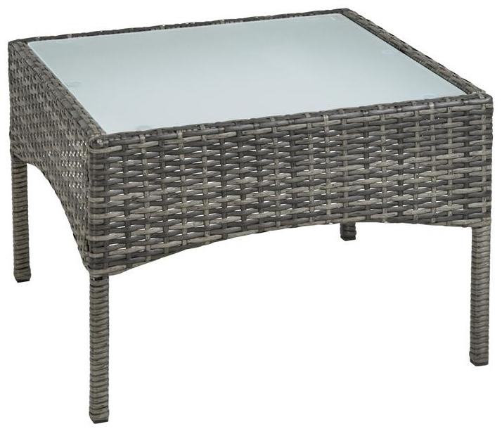 Moderner Polyrattan Beistelltisch, ideal für Garten und Balkon. Er eignet sich perfekt als Lounge- oder Kaffeetisch und harmoniert hervorragend mit Polyrattan Gartenstühlen. Das edle Rattangeflecht und die Milchglasplatte verleihen dem Tisch eine ansprechende Optik, während die stabile Stahlkonstruktion für Langlebigkeit sorgt. **Highlights** - Modernes Design für Garten und Balkon - Vielseitig einsetzbar als Lounge- oder Kaffeetisch - Harmoniert ideal mit Polyrattan Gartenstühlen - Edles Rattangeflecht und Milchglasplatte - Stabile Stahlkonstruktion **Produkteigenschaften** - Größe (LxBxH): ca. 58 x 58 x 42 cm - Material Gestell: Stahl - Material Tischplatte: Sicherheitsglas (Milchglas) - Stärke der Tischplatte: ca. 0,5 cm - Tischbeine: ca. 2 x 2 cm - Farbe: Anthrazit/Grau