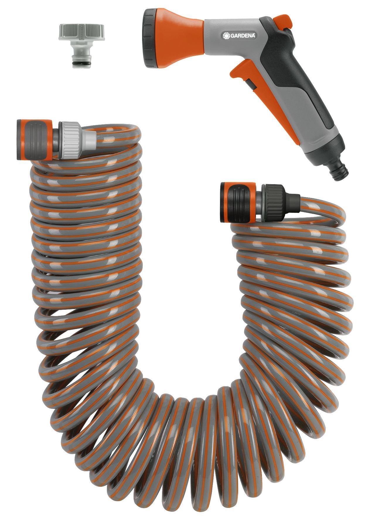 - Das GARDENA Spiralschlauch-Set hat eine Länge von 10 m, was es ideal für die Bewässerung kleinerer Flächen macht.