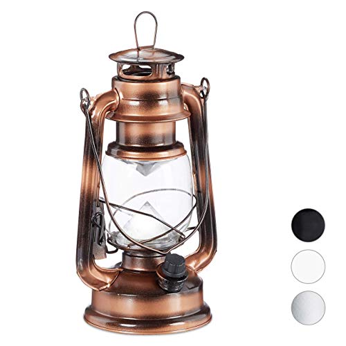 in GartendekorationRelaxdays Sturmlaterne LEDRetro Sturmlampe als Fensterdeko oder elektrische Gartenlaterne, batteriebetrieben, Kupfer, 24 x 15 x 11.5 cm