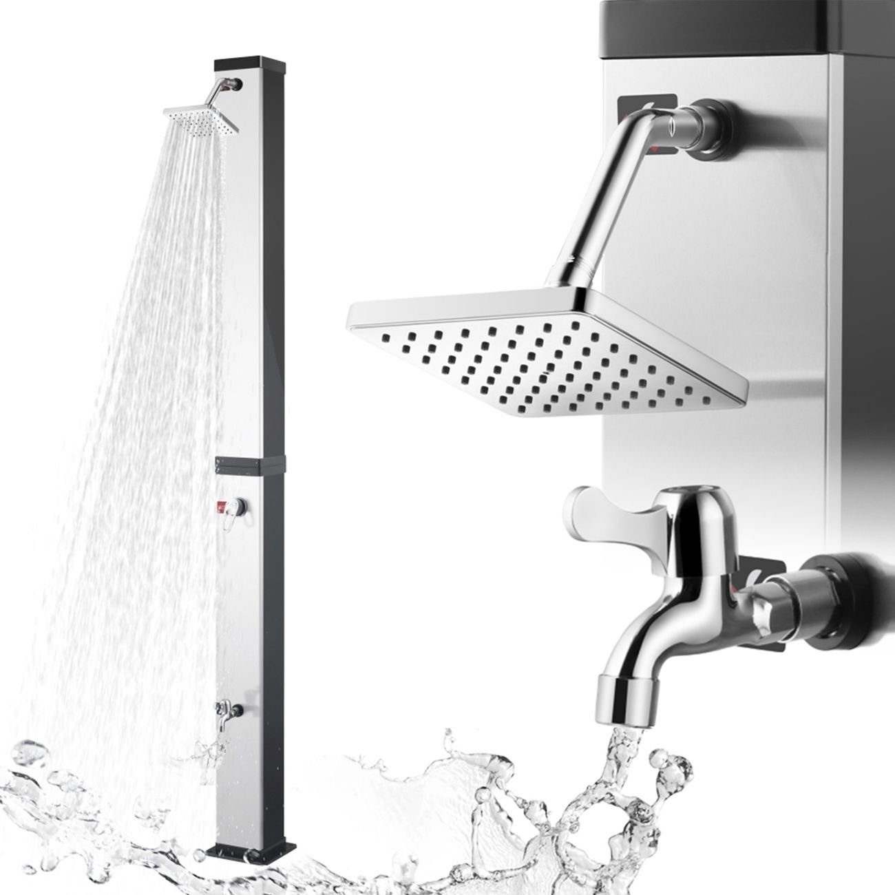 - Die Solardusche "Ocean" von Strattore in Schwarz/Silber ist die ideale Gartendusche für den Sommer
