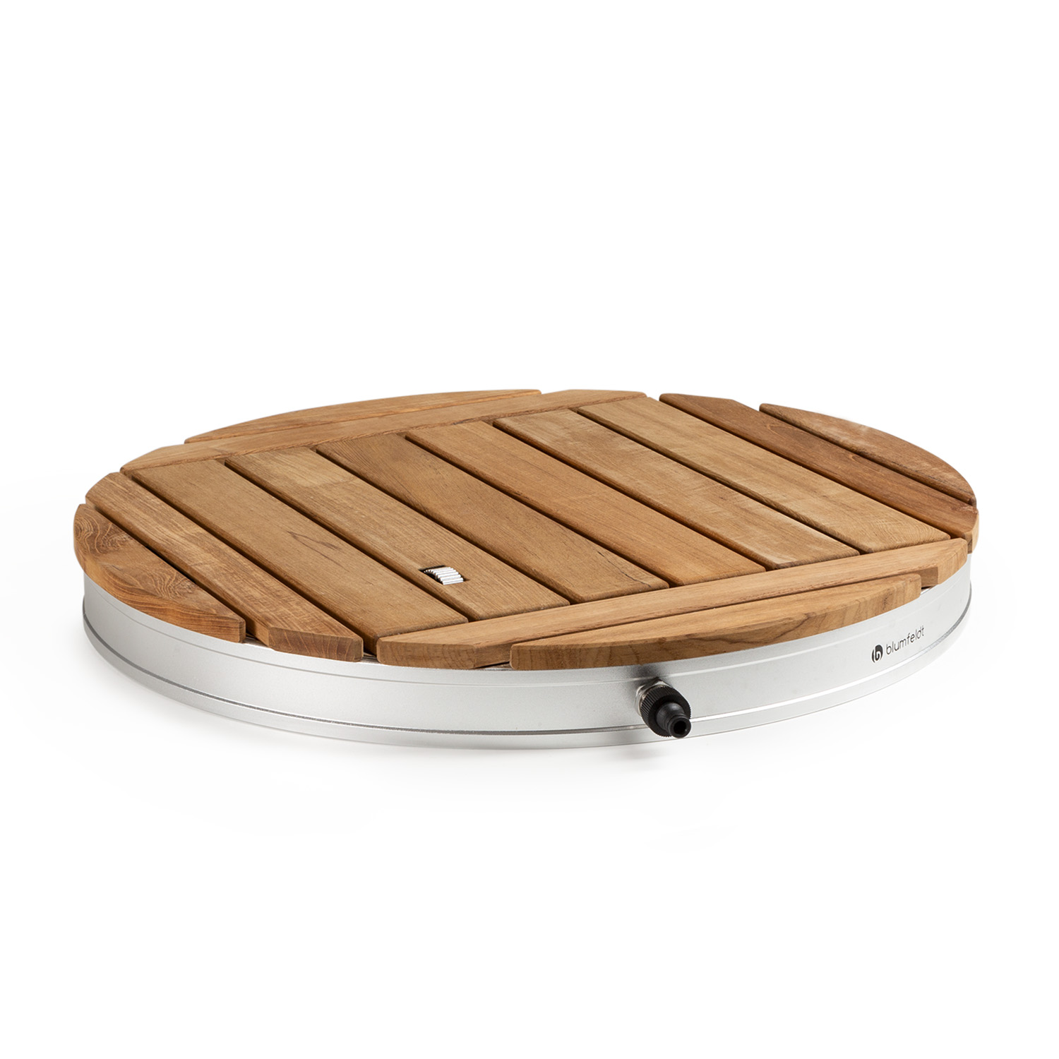 - Die blumfeldt Sumatra Teak Round Bodendusche bietet eine einfache Verbindung zu einem Gartenschlauch für sofortige Erfrischung.