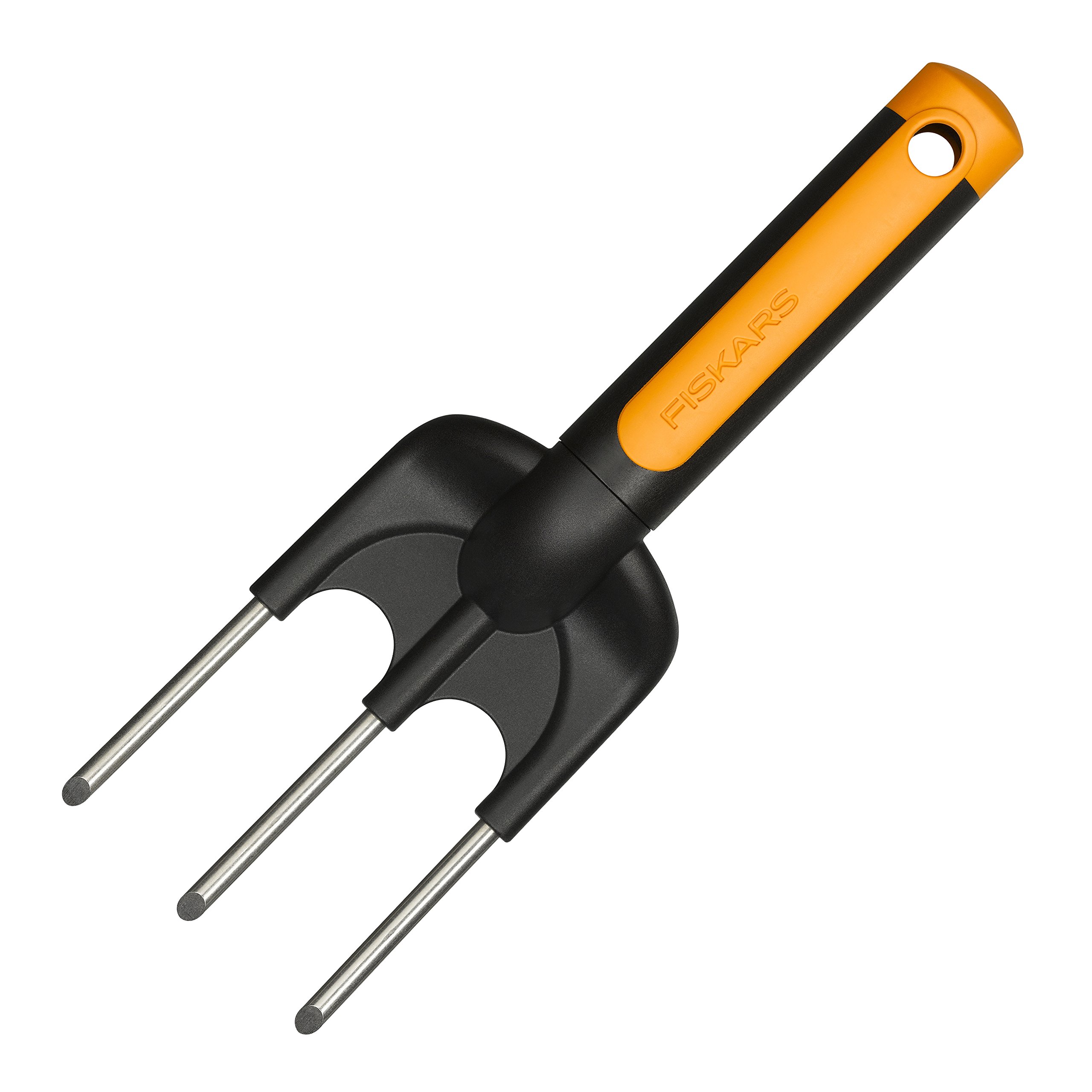 Fiskars Pflanzgabel mit 3 ZinkenLänge: 25 cm, Rostfreie Stahl-Zinken, Schwarz-Orange-Grau, Premium, 1000729