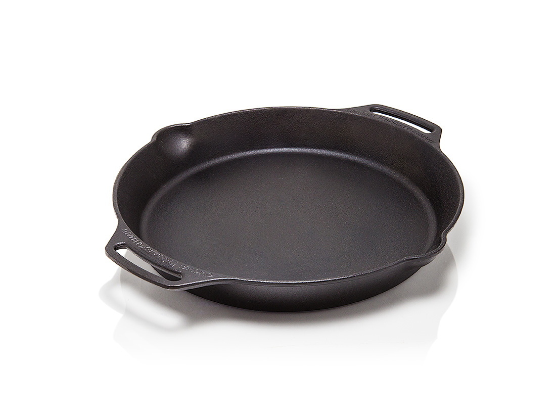 - Mit zwei gegenüberliegenden Henkeln lässt sich die Pfanne sicher tragen und aufhängen, und sie ist in fünf Größen erhältlich.