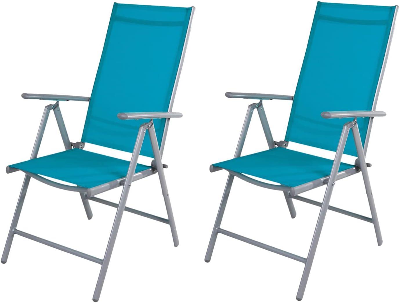 2er Set Garten Klappstuhl Aluminium - Textilen Silbergrau/Petrol