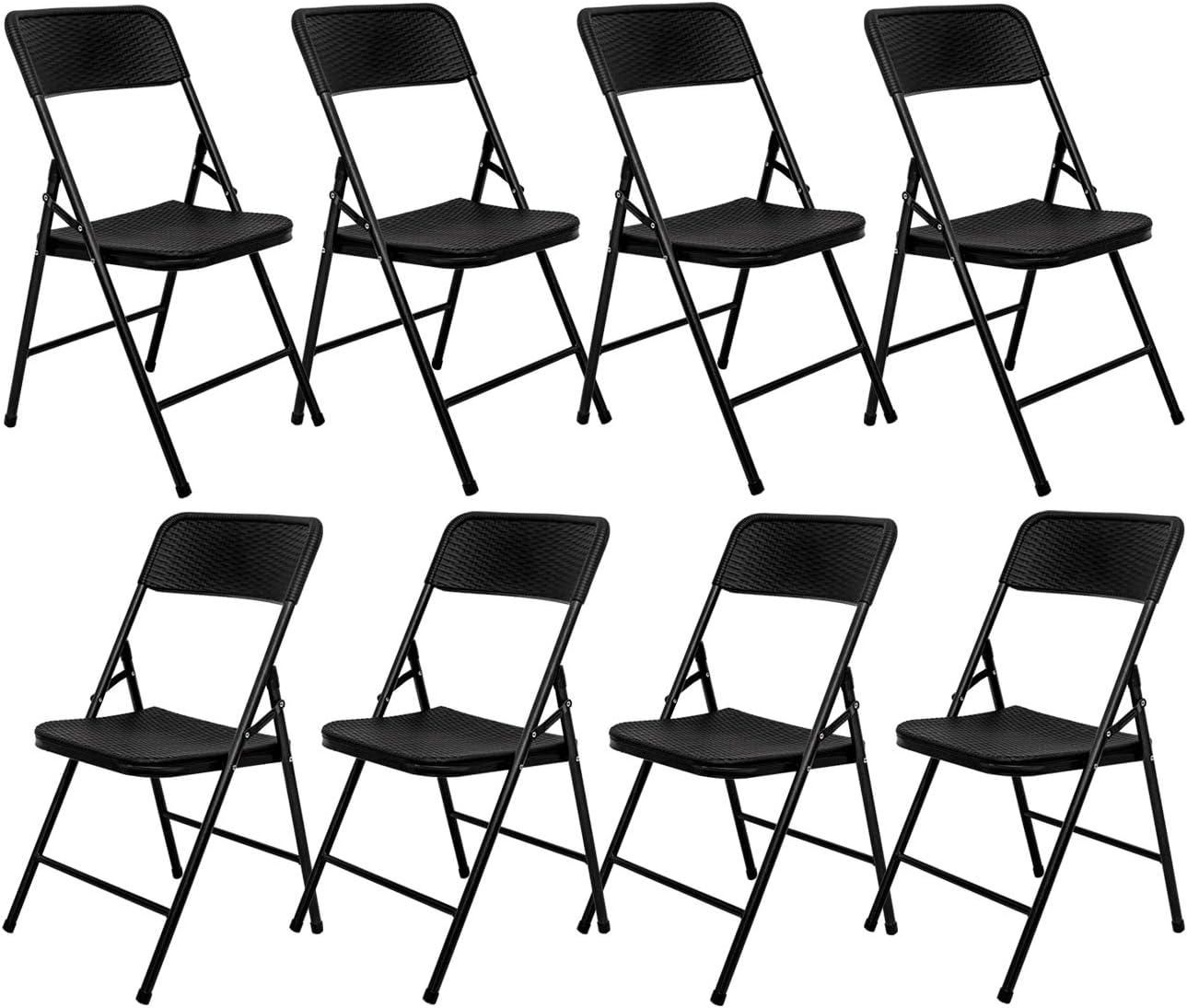AMANKA 150kg Klappstuhl 8er Set - 50 x 46 x 83 Rattan-Optik Wetterfest Klappbar Balkonstuhl Gartenstuhl