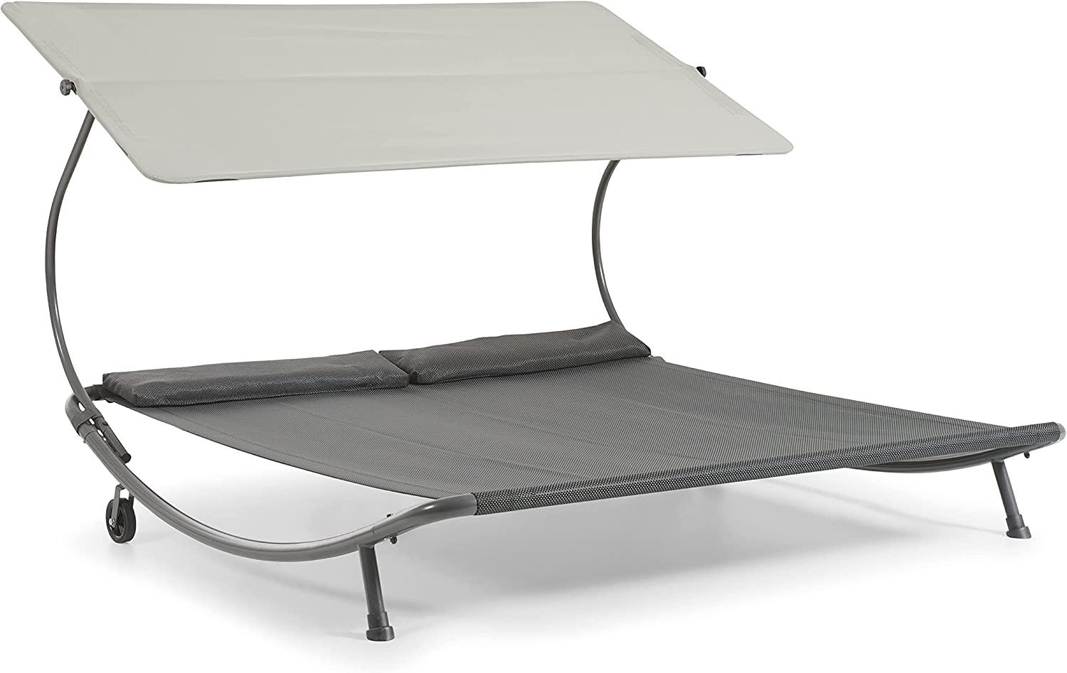 | Name | Leco 'STELLA' Gartenliege XL mit Rollen & Dach, Polyester Grau |