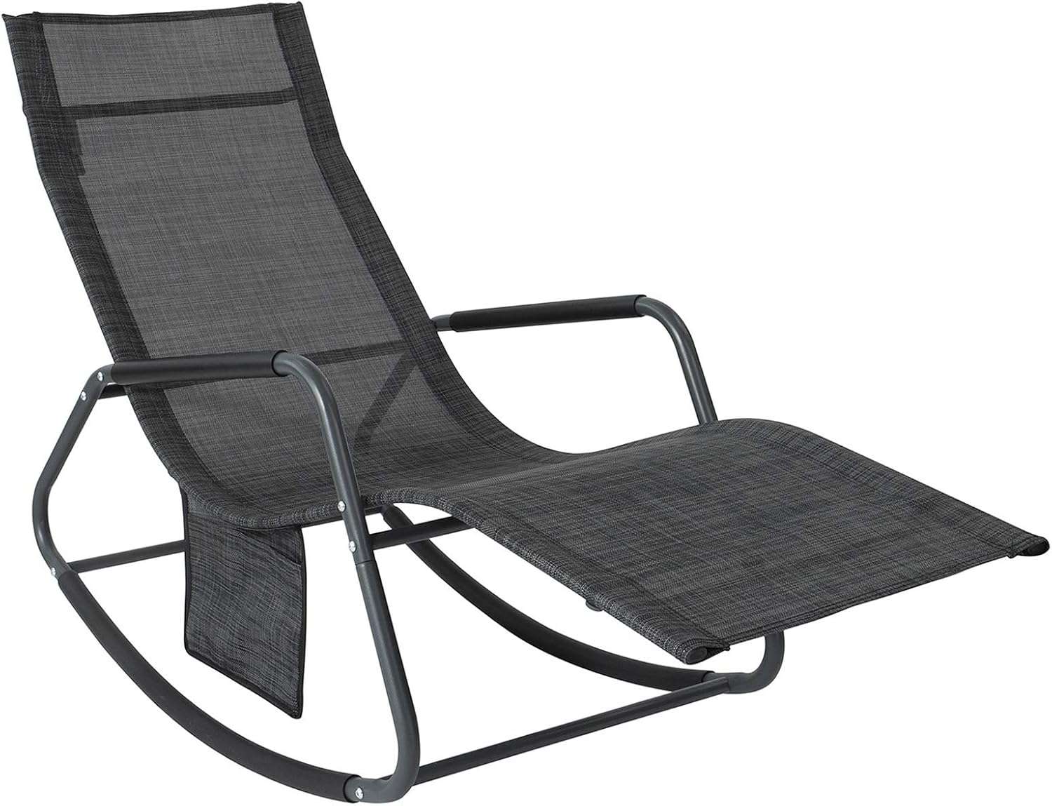 SoBuy OGS47-MS Schaukelliege Garten Sonnenliege mit Seitentasche Gartenliege Relaxstuhl Liegestuhl Schwingliege Schwarz/Grau bis 150 kg belastbar BHT ca: 143 x 85 x 57 cm