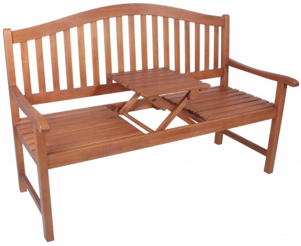 in Gartenmöbel: Gartenbänke'PHUKET' Bankmit hochklappbarem Tisch, Eucalyptusholz Natur, 150 x 105 x 63 cm