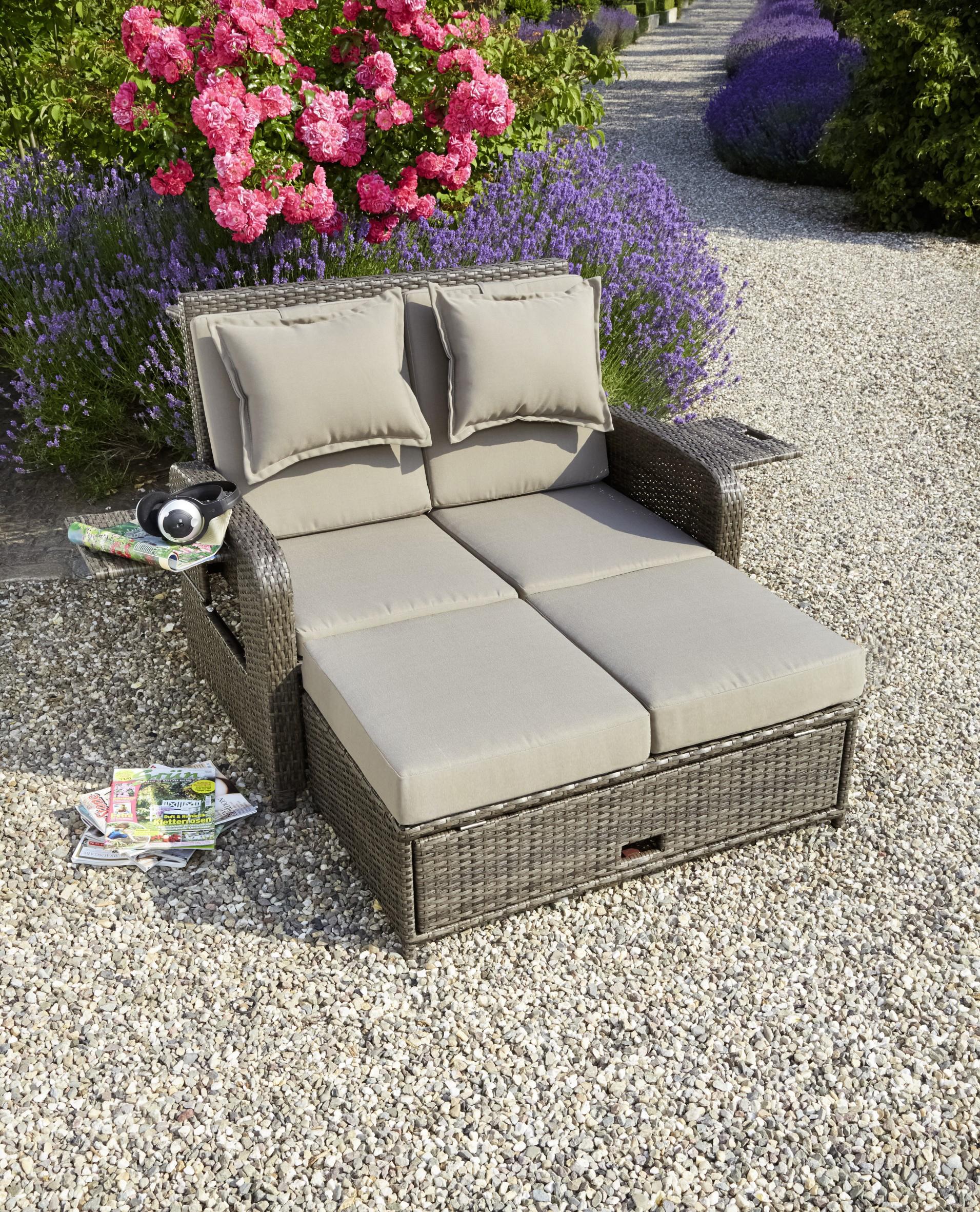 in Gartenmöbel: Gartensofasgreemotion Rattan-Lounge Bahia RondoSofa & Bett aus Polyrattan, indoor & outdoor, 2er Garten-Sofa, Daybed, braun-beige, ca. 121 x 99 x 143 cm