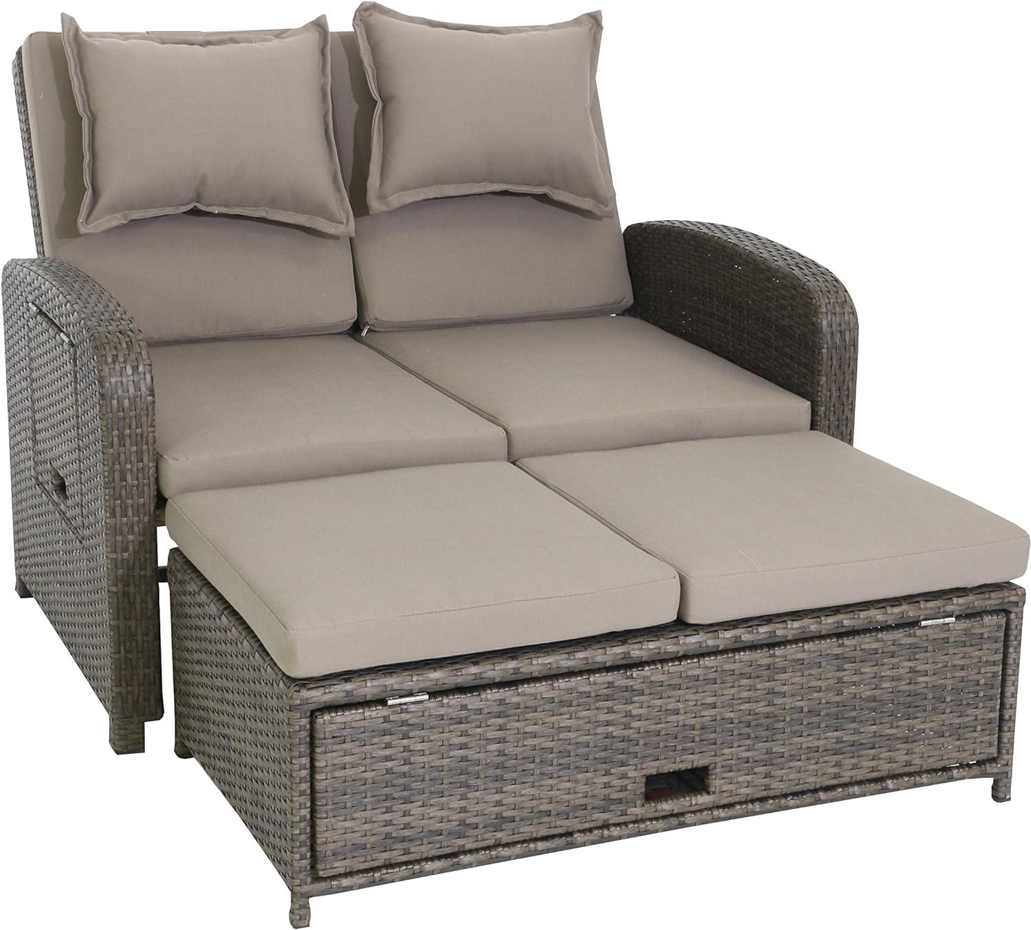 | Name | greemotion Rattan-Lounge Bahia Rondo, Sofa & Bett aus Polyrattan, indoor & outdoor, 2er Garten-Sofa, Daybed, braun-beige, ca. 121 x 99 x 143 cm |