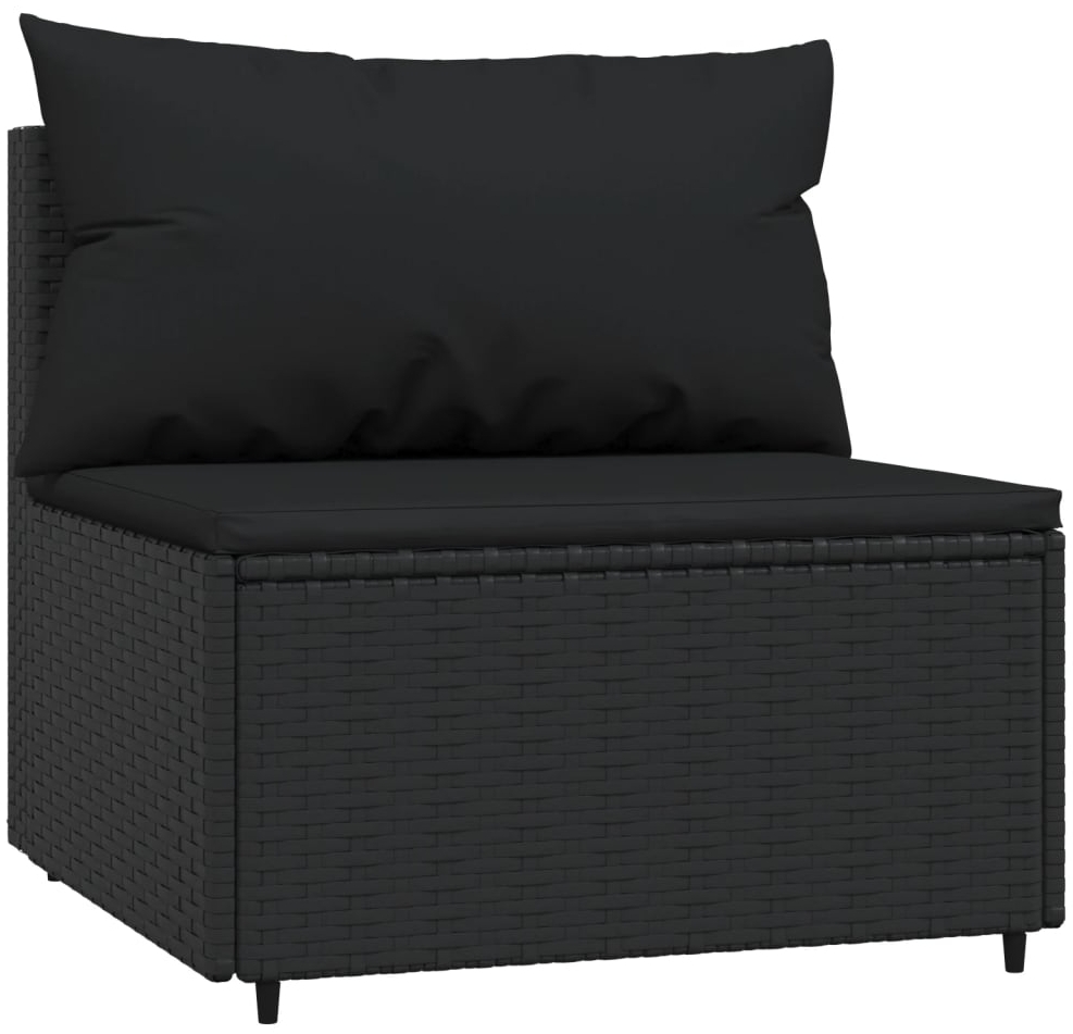 vidaXL Garten-Mittelsofa mit Kissen Schwarz Poly Rattan 319785