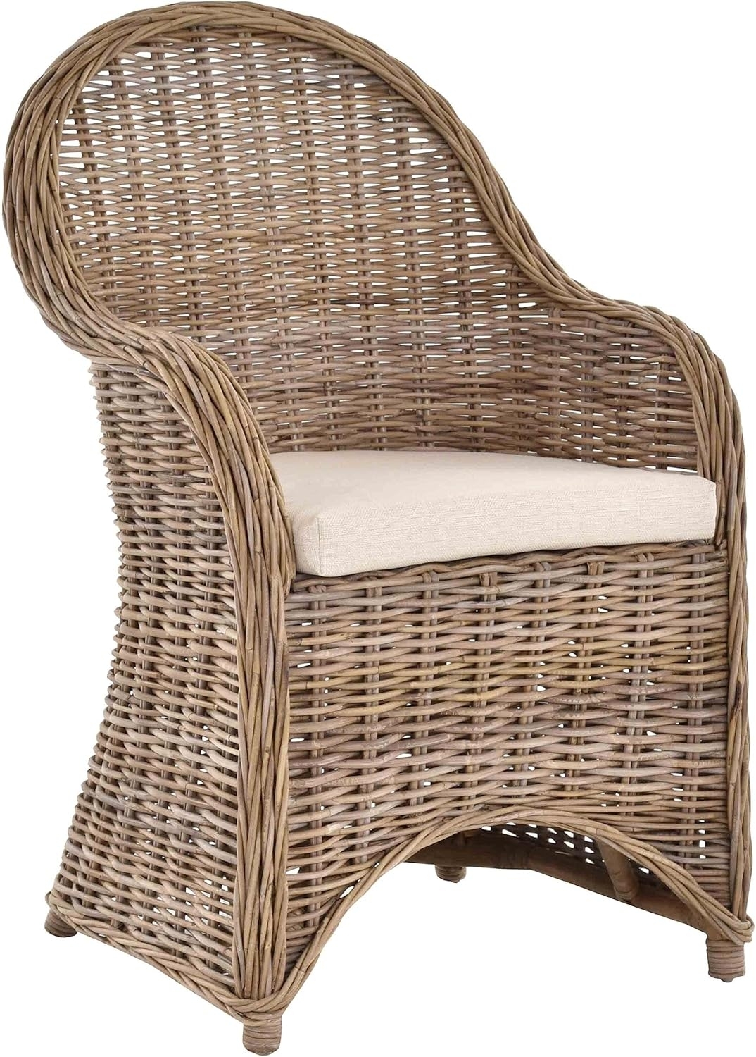 Krines Home Esszimmersessel ist ein stilvoller Rattansessel mit Armlehnen, der sich ideal für Esszimmer, Küchen, Flure und Schlafzimmer eignet. Der bequeme Flechtsessel im Kolonialstil bietet eine hochwertige Verarbeitung aus ungeschältem Natur-Rattan und ist mit einer 5 cm Schaumstoff-Füllung ausgestattet, die für zusätzlichen Komfort sorgt. **Highlights** - Bequemer Flechtsessel im Kolonialstil - Handarbeit aus ungeschältem Natur-Rattan - Hochwertige und stabile Verarbeitung - Polster mit 5 cm Schaumstoff-Füllung - Ideal für Gastronomie und Praxen **Produkteigenschaften** - Maße (HxBxT): 95 x 61 x 59 cm - Sitzhöhe: ca. 51 cm - Sitzbreite: ca. 43 cm (vorne) - Sitztiefe: ca. 51 cm - Material: 100% Polyester (Polster) **Lieferumfang** - 1x Esszimmersessel (einzeln verpackt) - Teststück auf Anfrage verfügbar - Weitere Sessel nicht im Lieferumfang enthalten