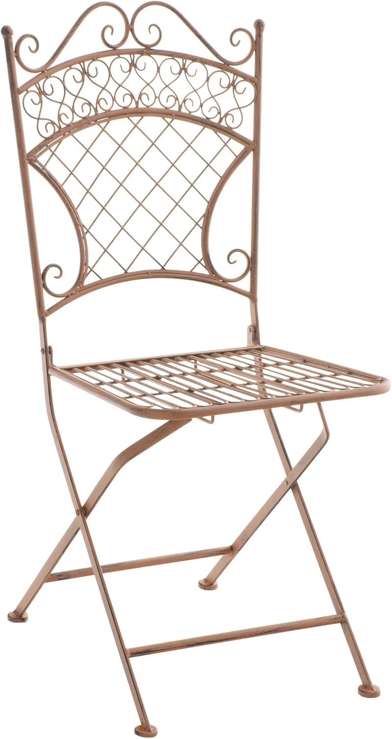 Dieser klappbare Gartenstuhl Adelar in antik braun vereint nostalgisches Design mit stabiler Konstruktion. Handgefertigte Verzierungen und eine in Handarbeit nachempfundene antike Patina verleihen ihm einen einzigartigen Charme. Ideal für Terrassen und Gärten, wird er zum Blickfang und ergänzt perfekt Ihre Gartengestaltung. **Highlights** - Nostalgisches Design: Der Stuhl besticht durch sein nostalgisches Design und verleiht Ihrem Garten eine einzigartige Atmosphäre. - Handgefertigte Verzierungen: Die liebevoll handgefertigten Details der Verzierungen machen den Stuhl zu einem echten Kunstwerk. - Stabile Konstruktion: Der Stuhl wurde aus Eisen handgefertigt und ist daher extrem stabil. - Antike Patina: Die Oberfläche des Stuhls ist mit einer in Handarbeit nachempfundenen antiken Patina veredelt. - Perfekte Ergänzung: Der Stuhl ergänzt sich hervorragend mit allen Metalltischen in unserem Shop. **Produkteigenschaften** - Gesamthöhe: 94 cm - Gesamtbreite: 42 cm - Sitzhöhe: 47 cm - Sitzfläche: 40 x 37 cm - Höhe Rückenlehne: 52 cm - Material: Eisen - Oberflächenveredelung: Handgefertigte antike Patina - Stabile Konstruktion für eine lange Lebensdauer - Perfekt für Terrassen und Gärten