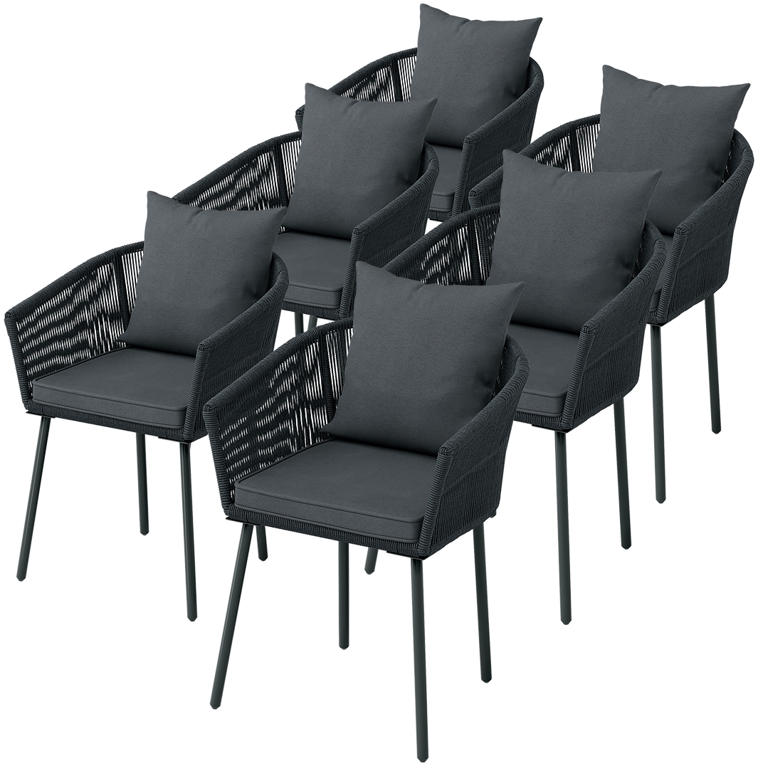 | Name | STEELSØN 'Nair' Polyrattan-Gartenstuhl inkl. Kissen, 6er-Set, dunkelgrau, wetterfest, bis 160 kg belastbar |