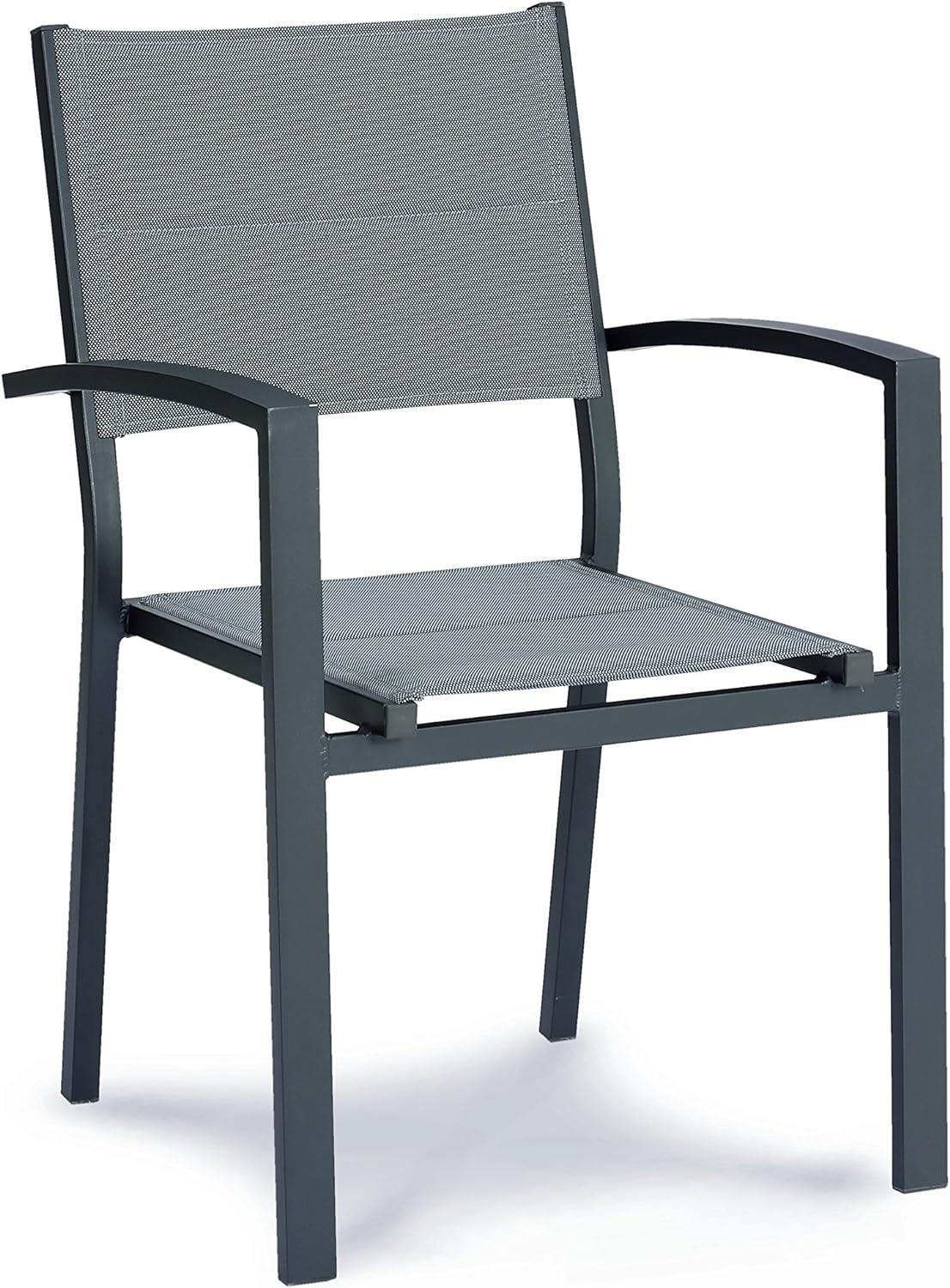 Beschreibung Der Stapelsessel Varese in anthrazit/matt von Best vereint schlichtes Design mit hoher Robustheit. Die ergonomisch geformte Rückenlehne und die doppelte, reißfeste Ergotex Bespannung bieten optimalen Komfort. Das Gestell sowie die Armlehnen bestehen aus hochwertigem, witterungsbeständigem Aluminium, was den Stuhl ideal für den Einsatz im Freien macht. Zudem lässt sich der Sessel platzsparend stapeln. **Highlights** - Ergonomisch geformte Rückenlehne für optimalen Komfort - Doppelte, reißfeste Ergotex Bespannung - Hochwertiges Aluminiumgestell für hohe Stabilität - Witterungsbeständig und für den Einsatz im Freien geeignet - Platzsparend stapelbar **Produkteigenschaften** - Material Gestell: Aluminium - Sitzschale: Ergotex - Abmessungen: - Höhe: 87 cm - Breite: 56 cm - Tiefe: 59 cm - Sitzfläche: 41 x 46 cm - Sitzhöhe: 43 cm - Höhe der Armlehne: 64,5 cm - Höhe der Rückenlehne: 45 cm - Gewicht: 3,7 kg - Montageart bei Lieferung: komplett montiert **Lieferumfang** - 1 Gartenstuhl montiert
