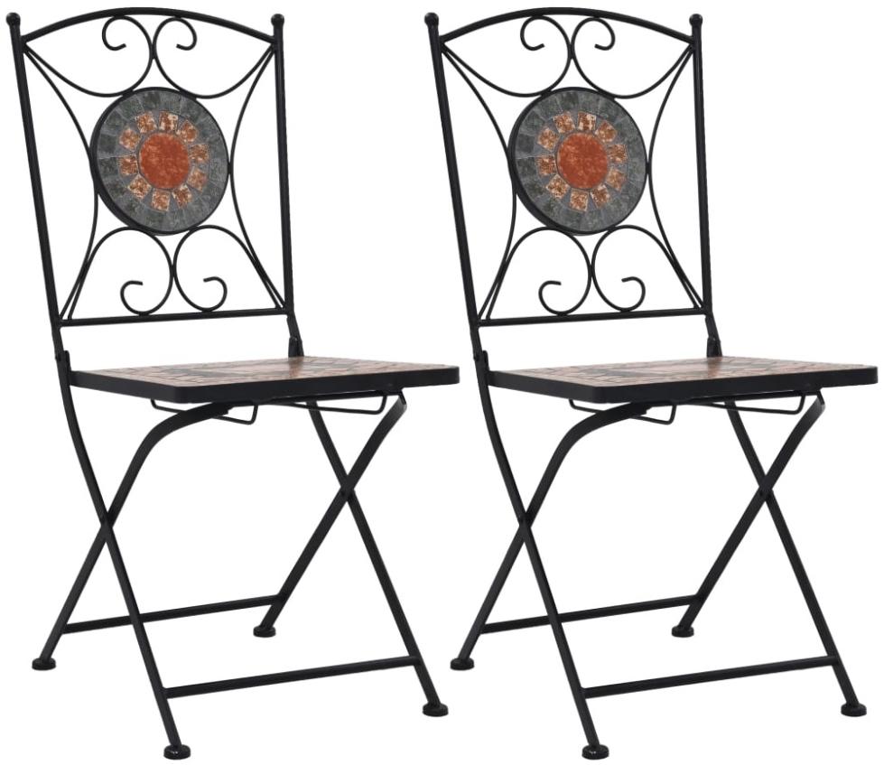 Die vidaXL Mosaik-Bistrostühle in Orange und Grau sind ideal für Terrasse oder Garten. Der pulverbeschichtete Eisenrahmen macht sie robust, während die wasserdichten Keramik-Sitzflächen leicht zu reinigen sind. Maße: 51 x 39 x 86 cm (B x T x H), Sitzgröße: 38x35 cm (B x T). Im Lieferumfang enthalten sind 2 Stühle. **Highlights** - Robuster pulverbeschichteter Eisenrahmen - Leicht zu reinigende wasserdichte Keramik-Sitzflächen **Produkteigenschaften** - Maße: 51 x 39 x 86 cm (B x T x H) - Sitzgröße: 38x35 cm (B x T) **Lieferumfang** - 2 Stühle