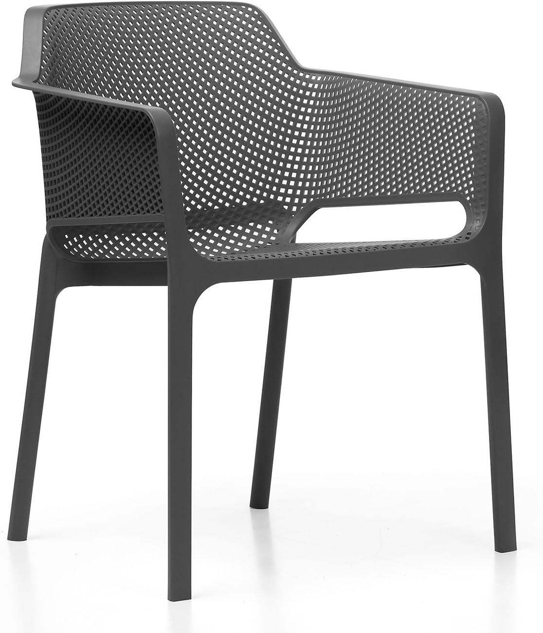 Der Gartenstuhl Net in Anthrazit vereint ansprechendes Design mit Funktionalität. Er ist platzsparend stapelbar und eignet sich ideal für die kompakte Lagerung auf der Terrasse. Hergestellt in Italien, besteht der Stuhl aus 100% recycelbarem Kunststoff und bietet eine maximale Belastbarkeit von 150 kg. Der Stuhl wird montiert geliefert und ist somit sofort einsatzbereit. **Highlights** - Platzsparendes Design: Der Stuhl kann einfach ineinander gestapelt werden und spart somit Platz bei der Lagerung. - Attraktives Design: Der Gartenstuhl Net ist nicht nur funktional, sondern auch optisch ansprechend. - Hochwertige Qualität: Hergestellt in Italien und zu 100% recycelbar. - Einfache Montage: Der Stuhl wird bereits montiert geliefert. **Produkteigenschaften** - Material Gestell: Kunststoff - Max. Belastung: 150 kg - Stapelbar - Abmessungen: - Höhe: 80 cm / Armlehne: 69 cm - Breite: 60,5 cm - Tiefe: 58,5 cm - Sitzhöhe: 46,5 cm **Lieferumfang** - 1 Stuhl montiert