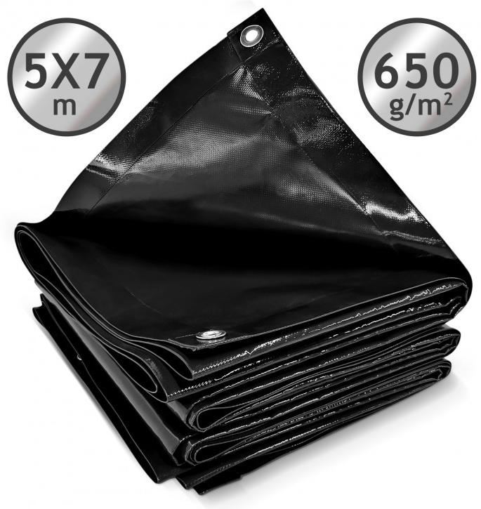 Jago® Abdeckplane mit 24 Ösen wasserdicht und reißfest, PVC, Schwarz, 5x7 m, 650 g/m²